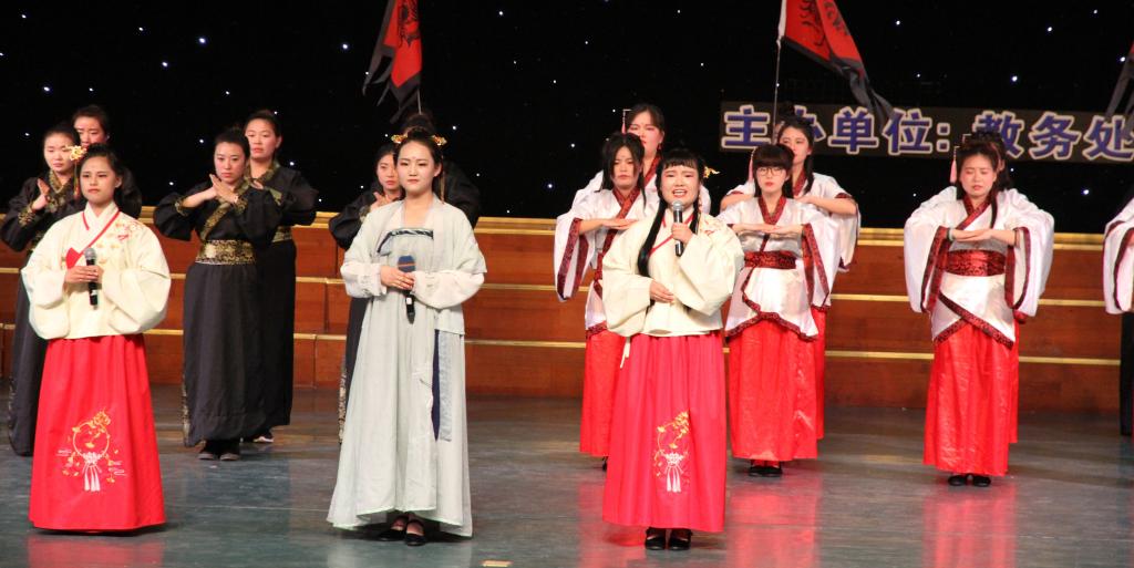 本次“经典照亮人生”诵读比赛(学生组)分个人和集体两种形式,共有184人34项节目参赛。赛场上,从《青春中国》到《重回汉唐》,从《少年中国说》到《相信未来》,从《春江花月夜》到《走西口》,一篇篇经典,一段段佳作,选手们用优美的音质、涌动的激情深情演绎。他们较好地把握了诵读的音调、音色和节奏,在配乐、舞蹈和服饰上也都精心准备,充分展示了经典文化的内涵、精髓和魅力,唤起了现场观众的共鸣。经过三个多小时的激烈角逐,教育科学学院《重回汉唐》、文学与传媒学院《秋瑾》分获集体组和个人组一等奖,《长征》《走西口》等十二个节目分获二、三等奖。
