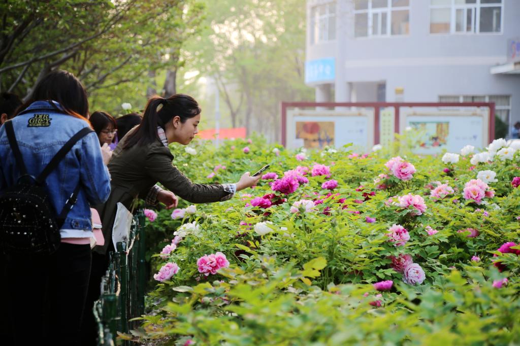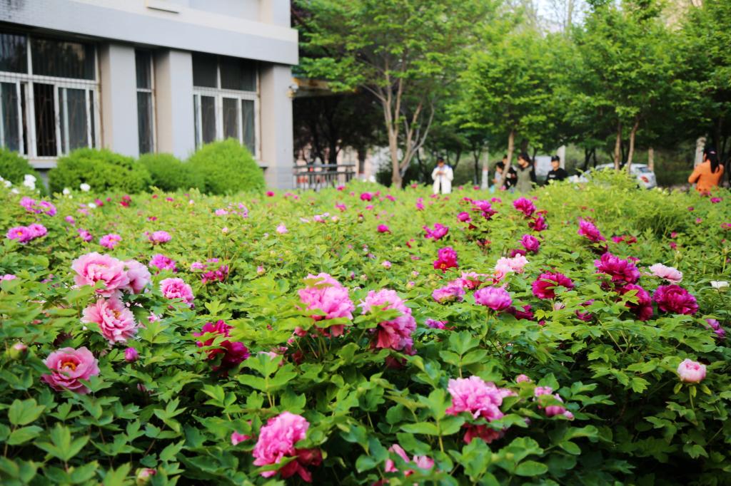 四月初至,金沙官网种植在东、西启智楼前的千余株牡丹进入盛花期,竞相逞美,花香四溢,吸引了大批师生和校外游客驻足观赏。