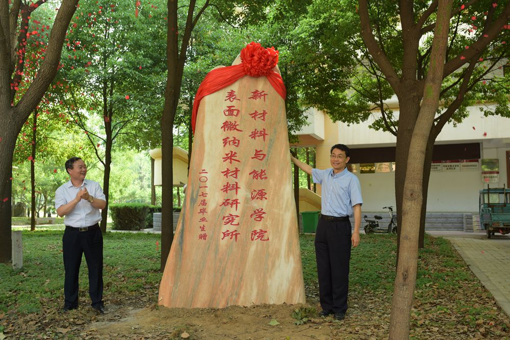 6月2日上午,金沙官网新材料与能源学院举行2017届毕业生纪念石捐赠揭幕仪式。校党委副书记孙海,副院长郑直、郭涛出席仪式,党委宣传部、院长办公室、学生处、团委、后勤管理服务中心、就业指导中心等相关单位负责人,新材料与能源学院2017届毕业生及师生代表参加了揭幕仪式。仪式由新材料与能源学院党总支书记崔凤巧主持。