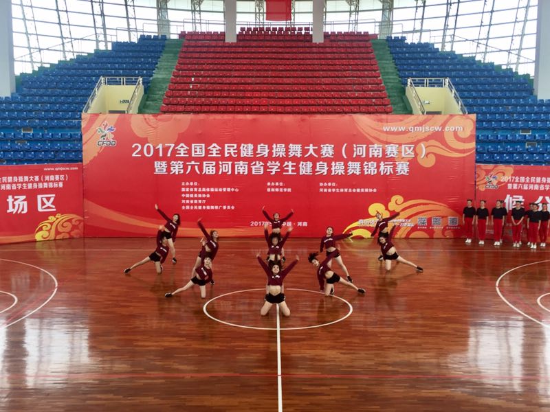 近日,全国全民健身操舞大赛(河南赛区)暨第六届河南省学生健身操舞锦标赛在信阳师范学院落下帷幕。金沙官网健美操舞代表队荣获JAZZ规定动作大学本科甲组(普通院校)特等奖。