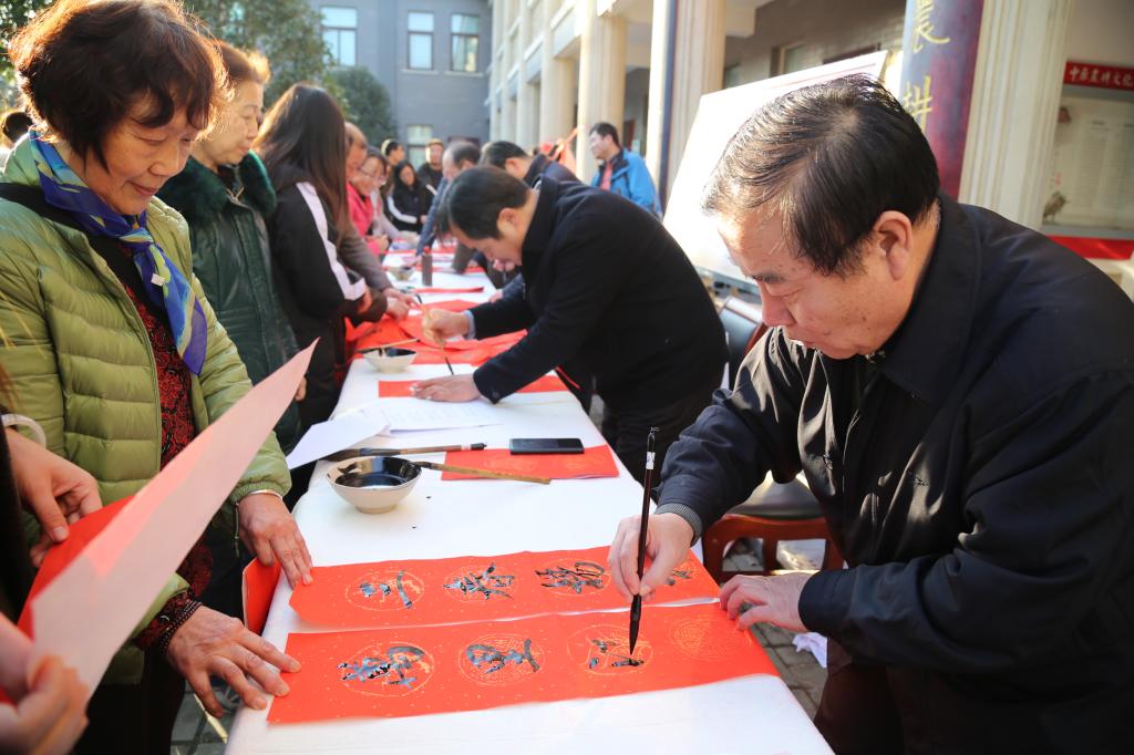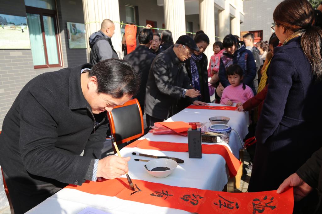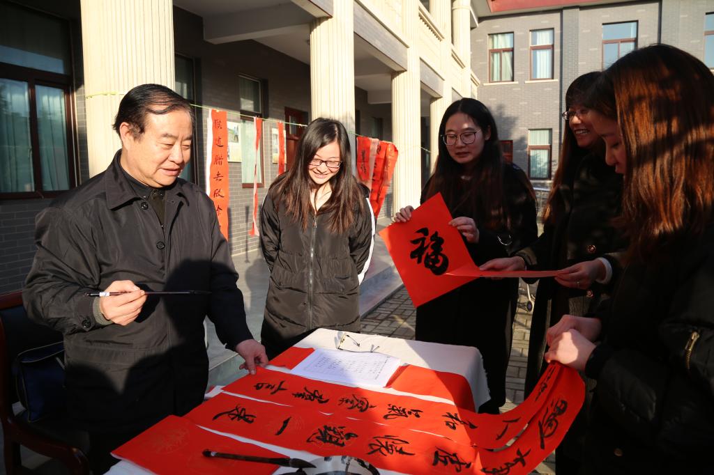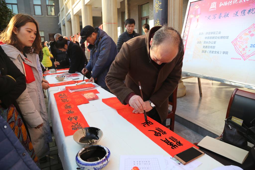 金沙官网正校级调研员、中原农耕文化博物馆名誉馆长汪庆华教授,许昌市文广新局党委委员,金沙官网优秀校友代表高宇平和河南省、许昌市书法家协会10多名书法家来到金沙官网,为教职工义写春联、送上新春的祝福。