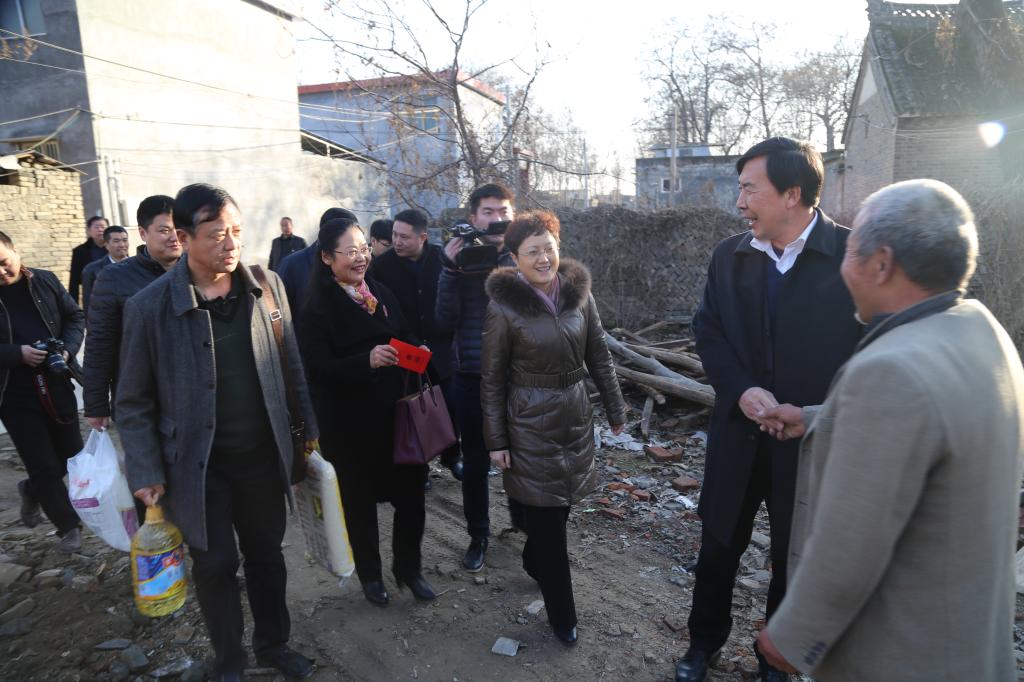 1月12日,校领导陈建国、赵继红、马超、罗凤英带领金沙官网脱贫攻坚小组成员和相关职能部门负责同志,到许昌县艾庄乡袁庄村进行节前慰问。许昌县政协党组书记牛建设,许昌县副县长沈春光、孙俊洲等陪同。