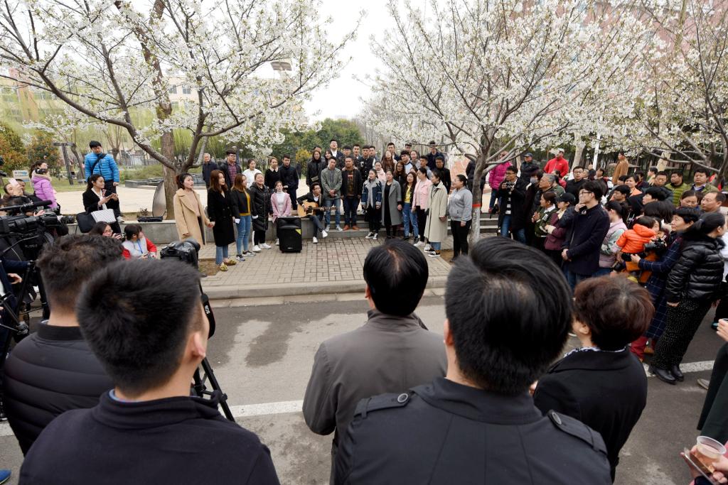 党委副书记马超在开幕式上致辞。他说,学校的359棵樱花树仿佛是梦幻的精灵,使青葱校园更显多彩与浪漫。这些樱花,体现着全校教职工高尚仁爱、无私奉献的园丁情怀,代表着两万余名莘莘学子的青春活力和只争朝夕的进取精神,象征着大学文化的圣洁和高贵。今年的金沙2004路线js5首届樱花文化节,精心安排了原创诗词征集、摄影作品大赛、摄影家、媒体人进校园、中华传统礼仪展示、樱花茶艺展示、无伴奏合唱、青春快闪等多项文化活动,希望各位来宾、广大市民在走进金沙2004路线js5观赏校园美景的同时了解学校发展,感受大学文化。