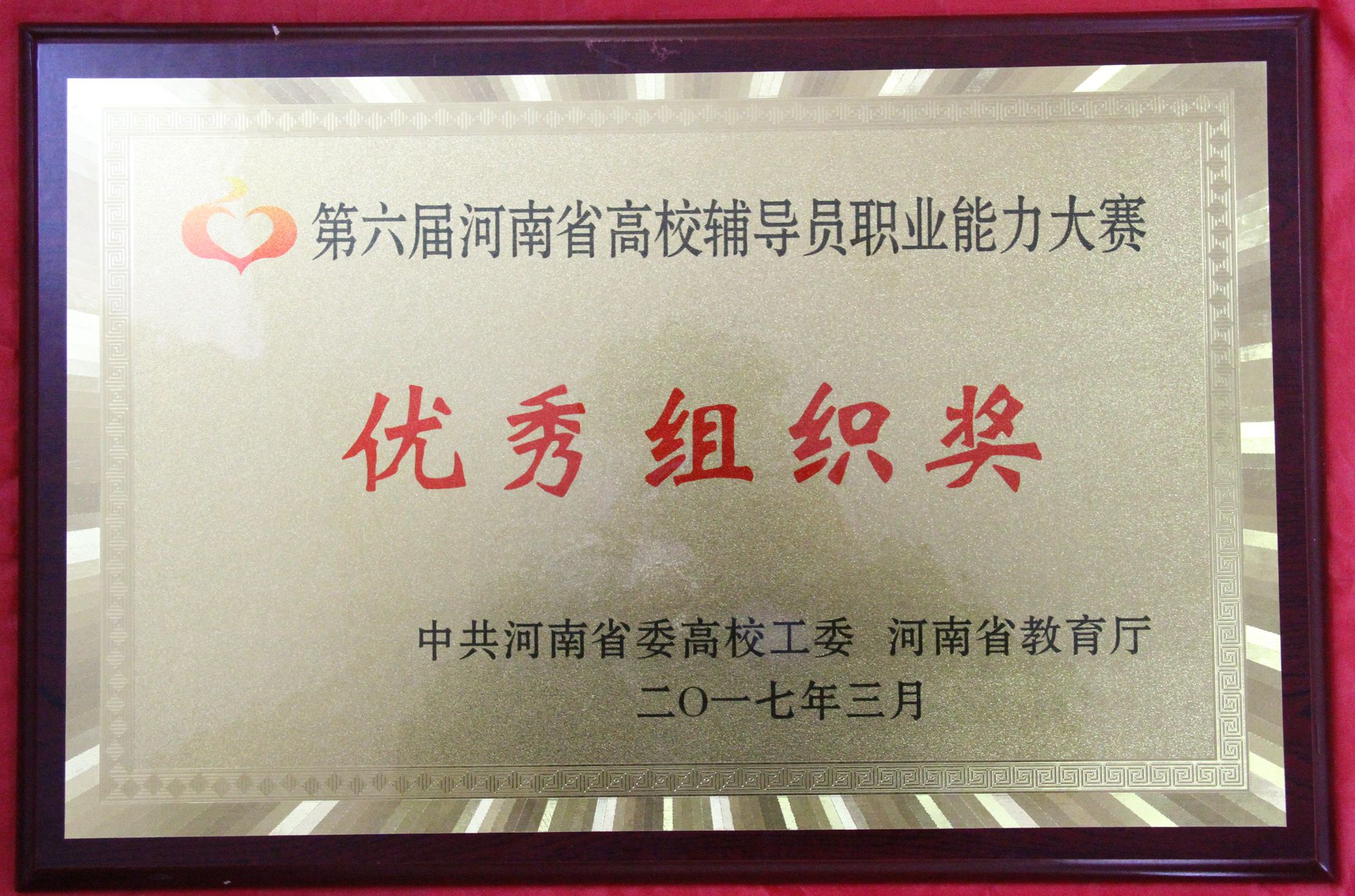 3月20日至25日,由中共河南省委高校工委、河南省教育厅主办,周口师范学院承办的第六届河南省高校辅导员职业能力大赛和2017年度河南省高校辅导员工作现场会在该校举行。金沙官网推荐的参赛选手美术学院辅导员杨晨老师获得大赛一等奖,城乡规划与园林学院辅导员赵学琴申报的《“致知班”成长训练营》荣获2016年度高校辅导员工作精品项目,金沙官网和郑州大学等15所高校荣获第六届河南省高校辅导员职业能力大赛优秀组织奖,这也是金沙官网参加该项赛事以来获得的最高奖项。