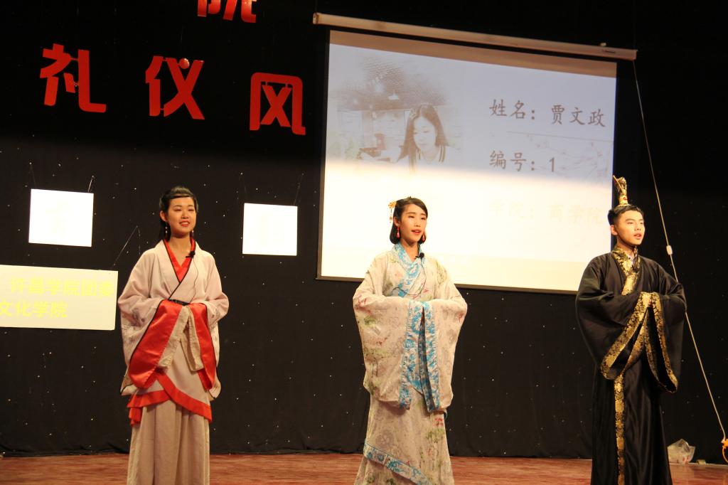 本次大赛以“礼风古韵”为主题,分为“选手亮相”、“礼仪情景剧”和“团队才艺”三个环节。选手分四组共11人,分别展示了唐代、汉代、民国以及现代等不同时代的礼仪。在情景剧展示环节中,选手们排演的情景剧巧妙地将不同时代的礼仪与舞台表演融合在一起,既风趣幽默,又让大家感受到了礼仪的魅力。在团队才艺展示环节,选手们充分发挥团队合作精神,唯美动人的歌舞《千古》、感情饱满的诗朗诵《祖国啊我亲爱的祖国》、青春靓丽的歌伴舞《告白气球》以及酷炫的《古装T台秀》赢得了领导、评委和师生的阵阵掌声。