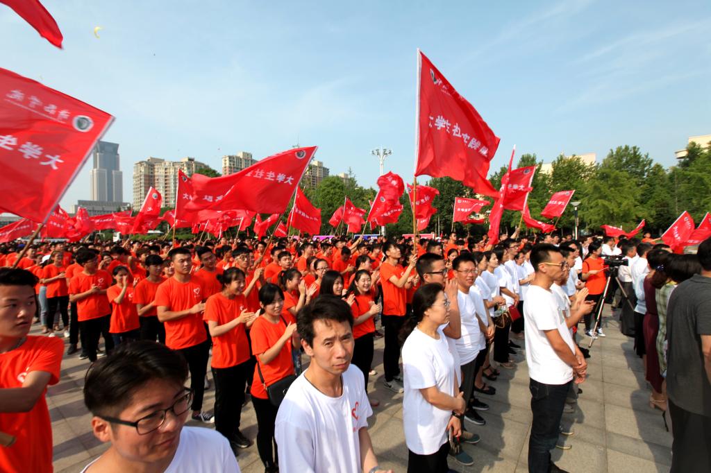 仪式最后,党委书记陈建国宣布2017年大学生暑期社会实践活动正式开始,台下掌声雷动,彩旗纷飞,实践队员热情洋溢的欢呼响彻整个弘毅广场。六辆大巴车和30辆“小绿”满载着实践队员“受教育、长才干、做贡献”的期望整装出发,将绿色、创新、共享的理念传遍许都大地。(摄影:宁智沛 张啸)