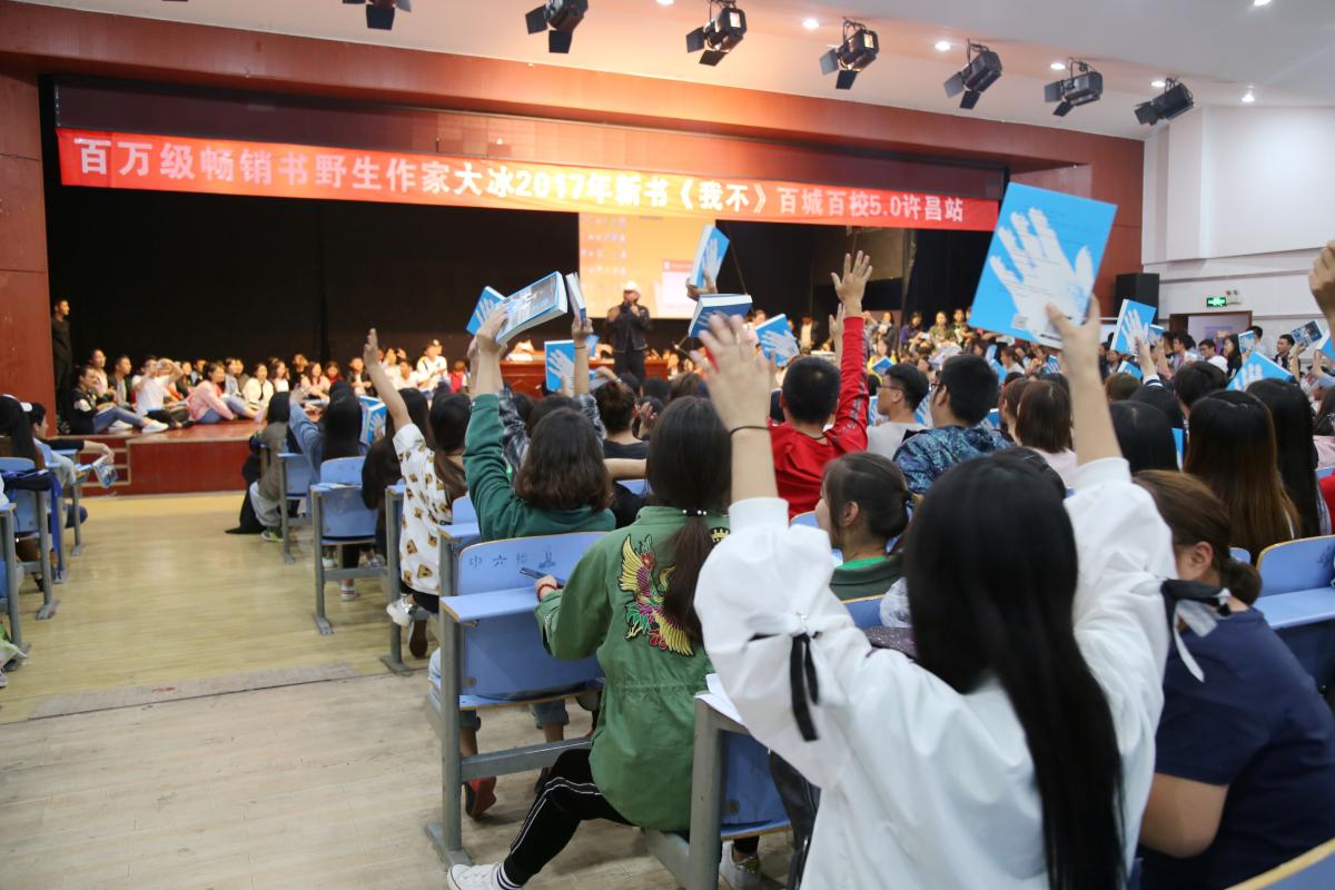 9月27日晚,校党委宣传部联合许昌新华书店特邀百万级畅销书作家大冰携2017年新作《我不》,在金沙官网大学生活动中心举办了长达3个小时的“百城百校5.0——金沙2004路线js5站读者见面会”。