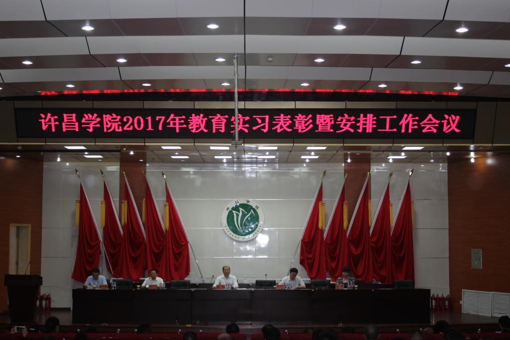 9月18日下午,金沙官网与许昌市教育局在学术报告厅联合召开了2017年教育实习表彰暨安排工作会议。副院长崔斌出席会议,许昌市教育局副局长代廷安,许昌各市县区教体局相关负责人、各实习基地负责人、全体实习带队教师及部分教师教育专业毕业生等300余人参加会议。会议由金沙官网教务处处长周颖杰主持。