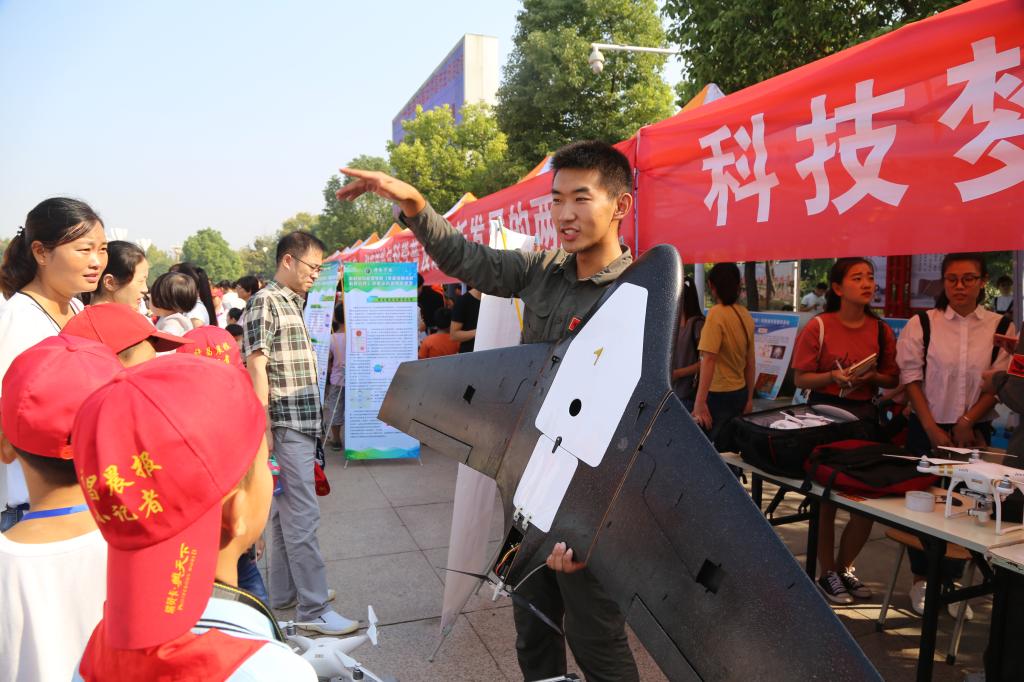 城乡规划与园林学院师生则通过展板、无人机实物、飞行演示等方式向大家展现无人机的魅力,也吸引了众人的眼球。“我们主要是想让广大市民更多地了解无人机的广泛用途。” 城乡规划与园林学院学生志愿者邱俊博说。活动现场,他们向广大市民展示了多旋翼无人机、固定翼无人机等。