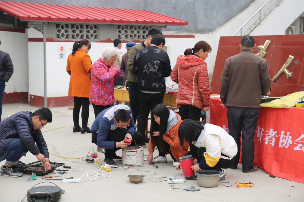 在村委大院正中间,几张简单的桌椅,便成为金沙官网电气工程学院(机电工程学院)小家电义务维修队的工作台。因为这不是义务维修队第一次来到村里,所以当村民得知消息后,便纷纷带着各式各样的故障小家电来到现场维修。在队员们对送来的电器进行逐一登记后,他们便分工合作,开始紧张有序的维修。队员们把损坏的电磁炉、电风扇、电茶壶、电饭煲、按摩仪等小家电经过清理、拆卸、检测后,换上队员们提前自备的小零件,再进行焊接、组装、调试等一系列维修流程后,它们一个个就神奇般地重新开始工作了。一直到到下午3点,近40件故障小家电在同学们手中恢复了正常。看到村民们的微笑称赞,队员们擦去脸上的汗水,露出了欣慰的笑容。(摄影:岳凯声)