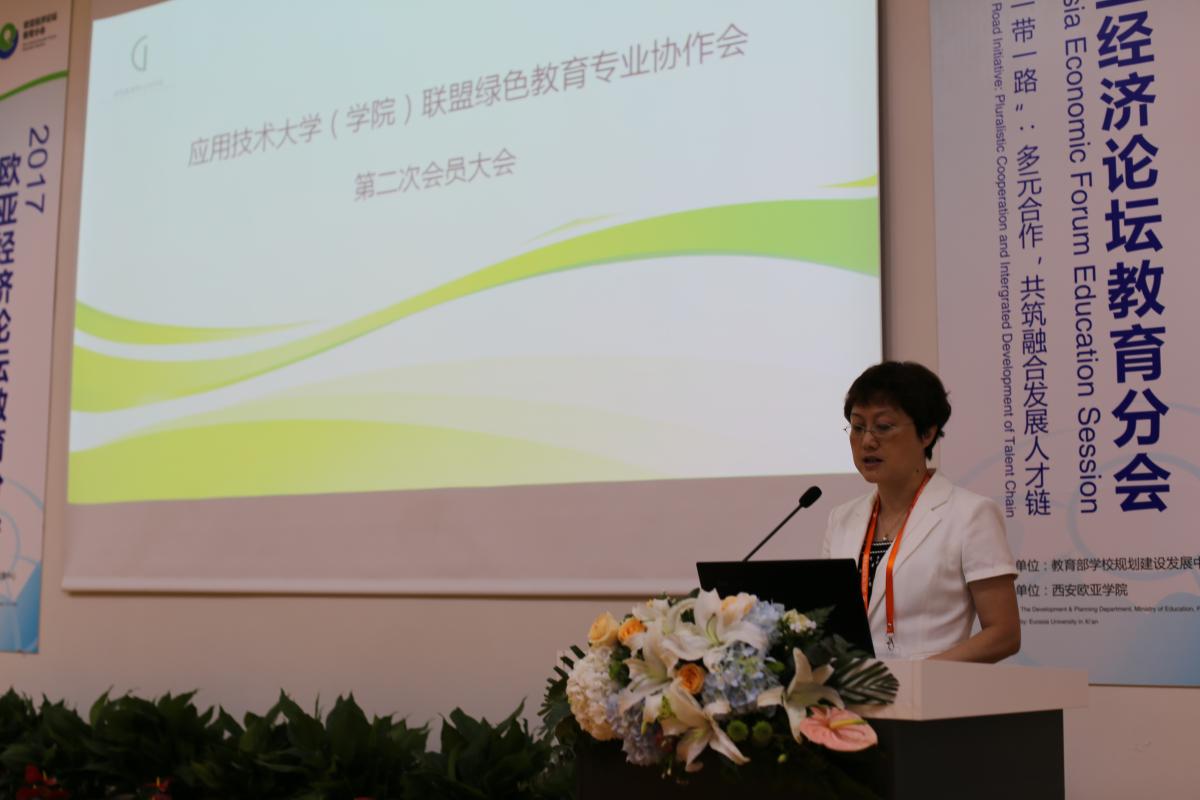 9月22日,应用技术大学(学院)绿色教育专业协作会第二次会员大会在西安欧亚学院举行,本次会员大会是以欧亚经济论坛教育分会分论坛之一的形式举行。来自26所高校、2家企业的领导专家共计60余人参加了本次论坛。