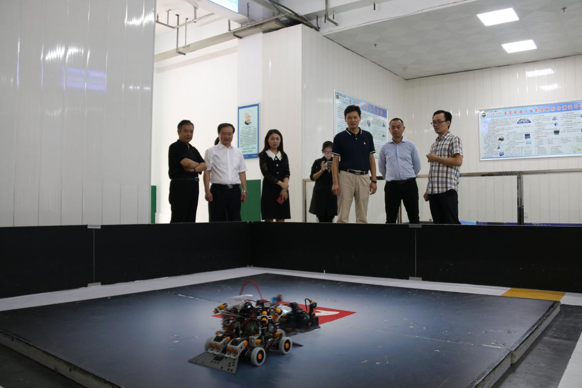 王笃波副书记一行观看创客实验室自主拼装的机器人