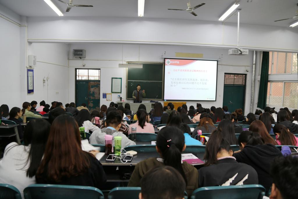 据悉,本次主题宣讲活动首次实现与学校《形势与政策》课堂教学相融合,注重充分发挥马克思主义学院思想政治理论课教师的师资优势,在理论与实际相结合中使主题宣讲走进大学课堂,进一步创新了主题宣讲的形式、拓展了主题宣讲的范围和影响。(摄影:张宁)