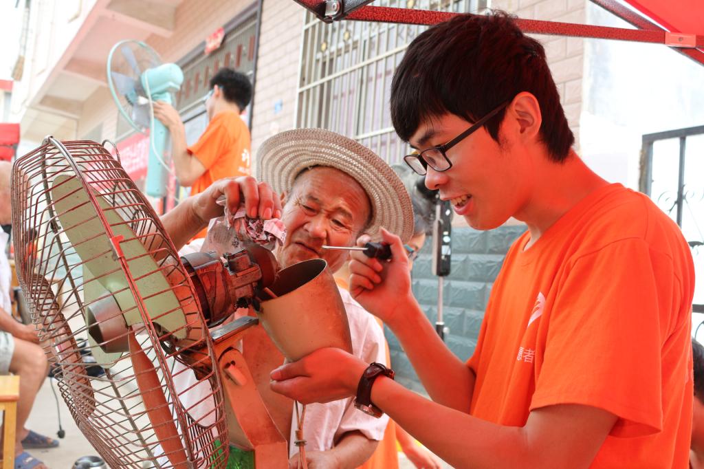 结合专业优势,正式开启家电义务维修活动。连日来,实践队员分头赶赴许昌市七一社区、许昌市艾庄乡袁庄村、禹州市苌庄乡毛栗沟村、郏县山头赵村为当地村民义务维修家电。实践队员们每天维修的电饭锅、电磁炉、电风扇等小家电达上百件,并前往村民家中维修空调、洗衣机、冰箱等大型家电,每天工作时间长达10小时。实践队员们用自己辛劳的汗水换来了近千户村民生活的便利。