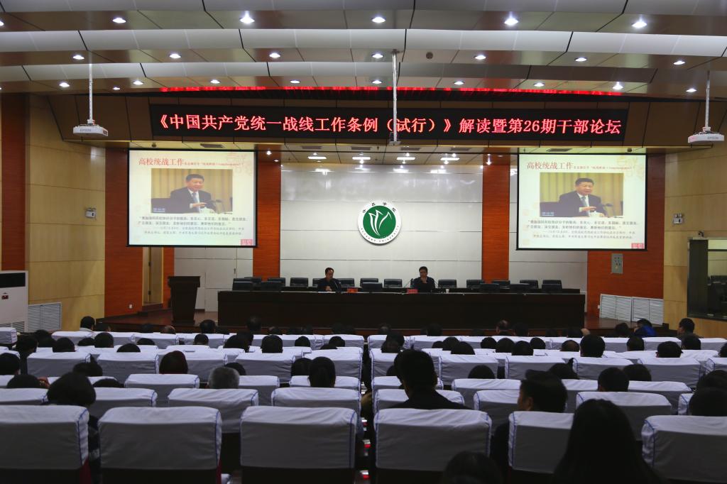 党委副书记马超在主持讲话中指出,此次论坛旨在认真贯彻落实中央、省委统战工作会议以及全国、全省高校统战工作会议精神,进一步提高统战对象、统战干部的综合素质和业务能力,努力适应统战工作新形势新要求,为学校深化转型发展作出积极贡献。马超副书记就《条例》的贯彻落实和有关统战工作强调两点意见,一是加强学习,深刻认识《条例》的重大意义以及统战法宝作用。二是结合实际,把学习贯彻《条例》精神与全省统战工作工作会议精神相结合,推动统战工作深入开展。