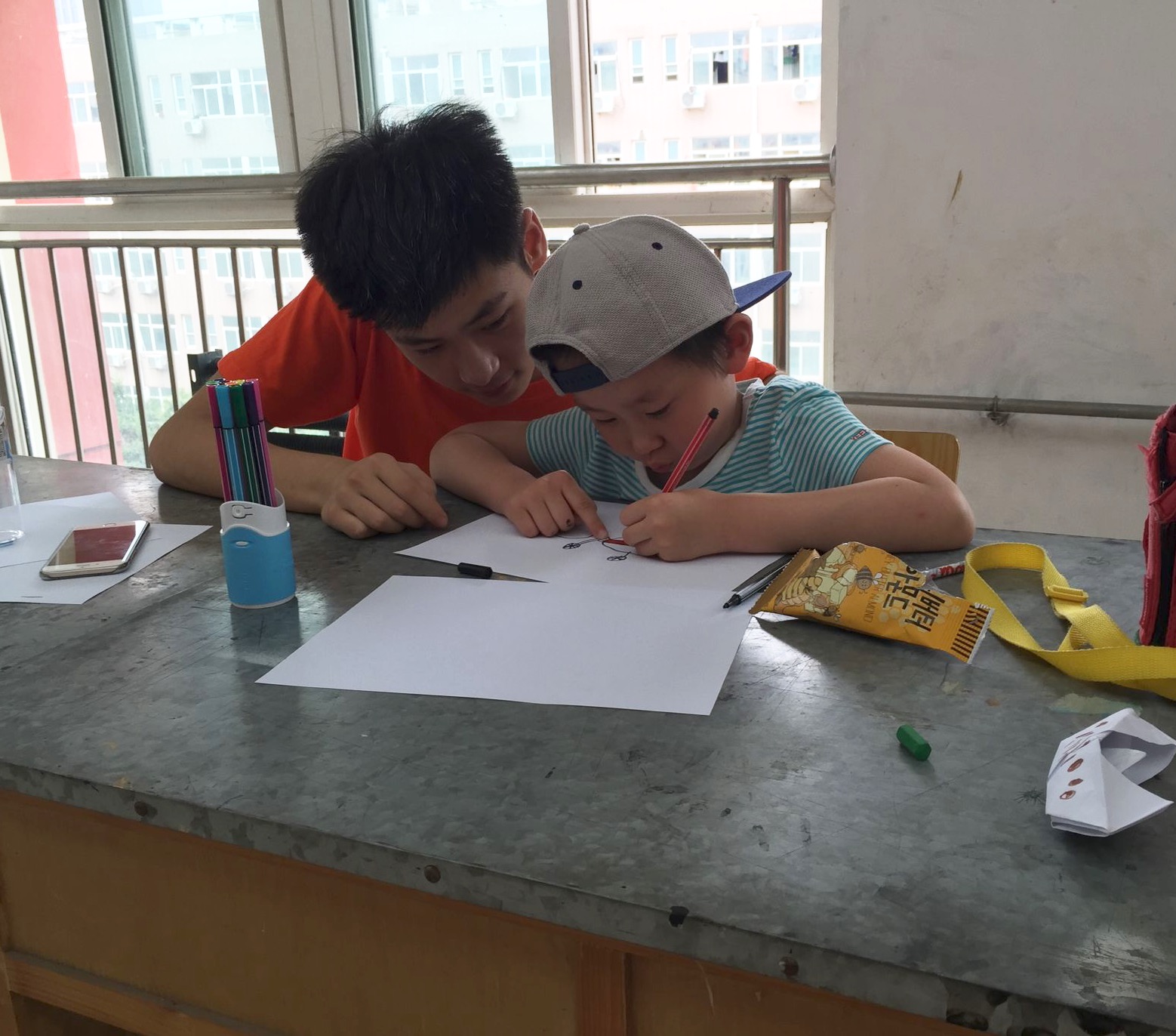 友的到来。连日来,实践队员们耐心地带领孩子们学习了卡通人物画、简笔画以及使用油画棒作画,并将陶泥、太空泥、折纸等趣味元素融入到教学中来,最大程度的激发孩子们的创造力和想象力。在实践队员们的引导下,孩子们掌握了基本的绘画方法,完成了一幅幅充满想象与童趣的作品。实践队员中,有的是第一次扮演老师的角色,通过这次实践,他们收获了爱与信任,更体会到作为一名老师的辛苦与责任。