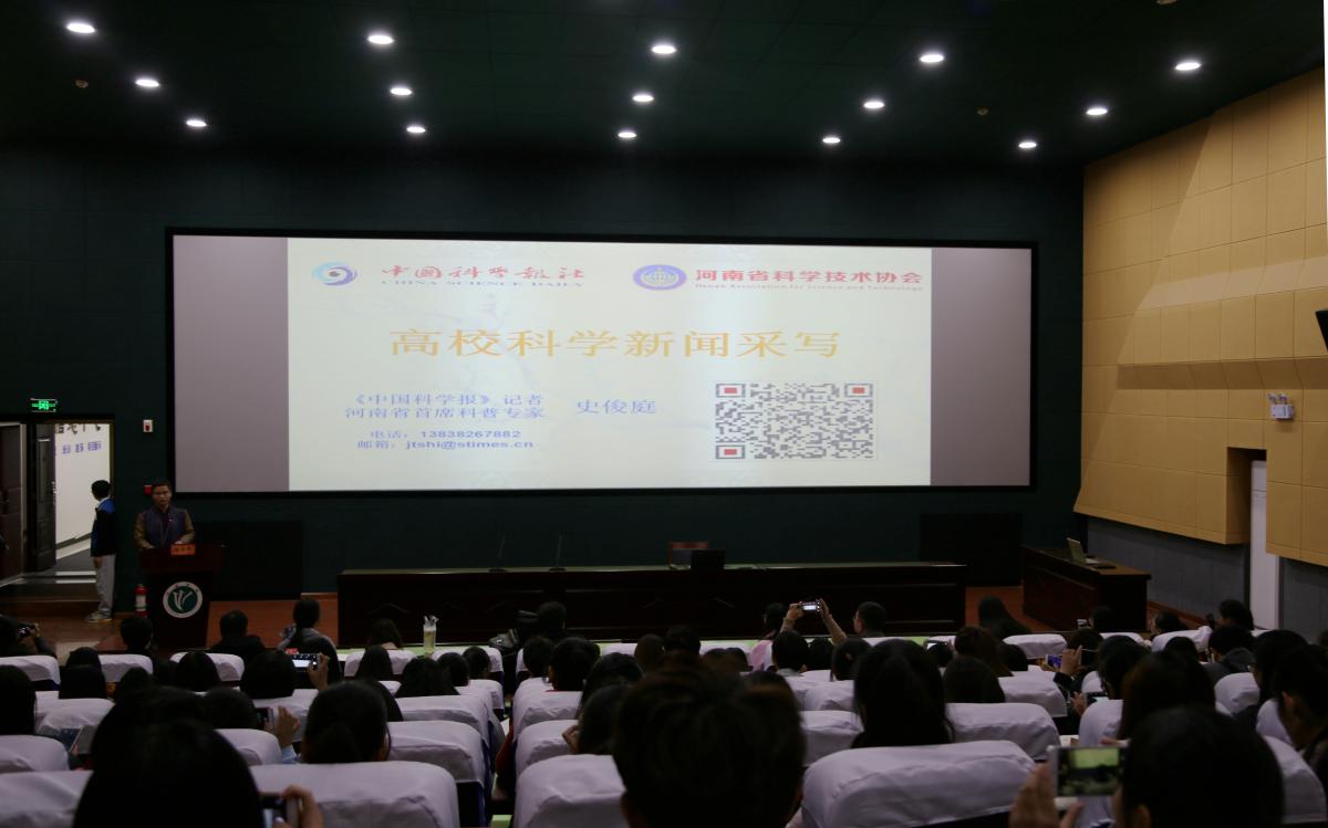 11月15日晚,金沙官网在创新创业学院二楼双创中心举办第五期“善闻者说”新闻讲堂。《中国科学报》驻河南记者站记者史俊庭为金沙官网新闻信息员、学生宣传工作骨干、校媒师生作了高校科学新闻写作的专题培训。本次新闻讲堂由党委宣传部副部长钟伟平主持。
