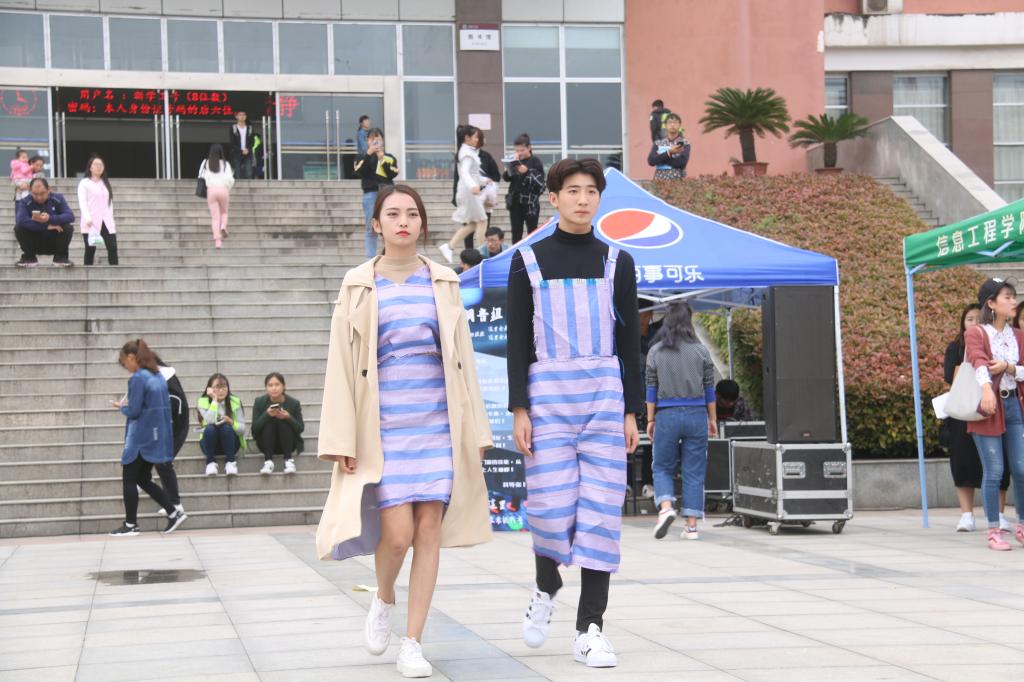 为了让同学们更深入地感受到绿色文化的魅力,教育科学学院和国际教育学院联合举办了环保T台秀,弘毅广场变身时尚T台,废弃的纸箱、报纸、棉布成了模特身上的高级定制时装,博得围观同学的阵阵喝彩。由学院工艺坊展出的温馨小屋、企鹅笔筒、趣味玩偶等废品改造而成的手工艺品,让围观同学纷纷驻足。据悉,这些趣味展品通过义卖所得资金将全部捐赠给福利院的孩子们。