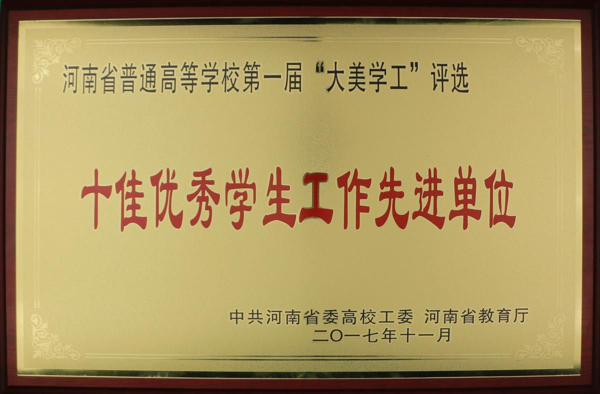 为全面学习贯彻党的十九大精神,落实立德树人根本任务,激发释放高校学生工作活力,发挥先进典型的示范引领作用,中共河南省委高校工委、河南省教育厅举办了普通高等学校第一届“大美学工”评选活动。“大美学工”评选活动旨在表彰先进,树立典型,推动我省高校学生工作内涵式发展,提高办学水平和育人质量。经全省高校申报,网络投票,省教育厅专家评审,郑州大学等10所高校被评为“十佳优秀学生工作先进单位”,郑州大学“毕业生‘三个一’主题教育活动”等10个学生工作项目被评为“十佳优秀学生工作品牌”,杨国欣等12名学生工作者被评为“十佳优秀学生工作者”。