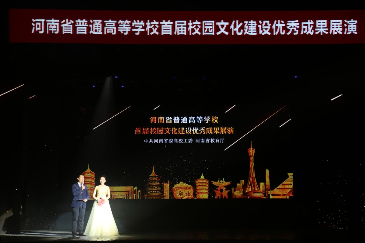 11月27日,河南省首届普通高等学校校园文化建设优秀成果展演活动在河南大学大礼堂举行。省委高校工委专职副书记、省教育厅党组副书记郑邦山,省教育厅副巡视员李金川,省教育厅学生处长王继东等出席展演活动,并为获奖单位颁奖。