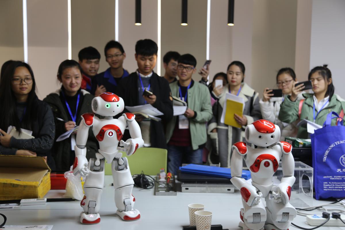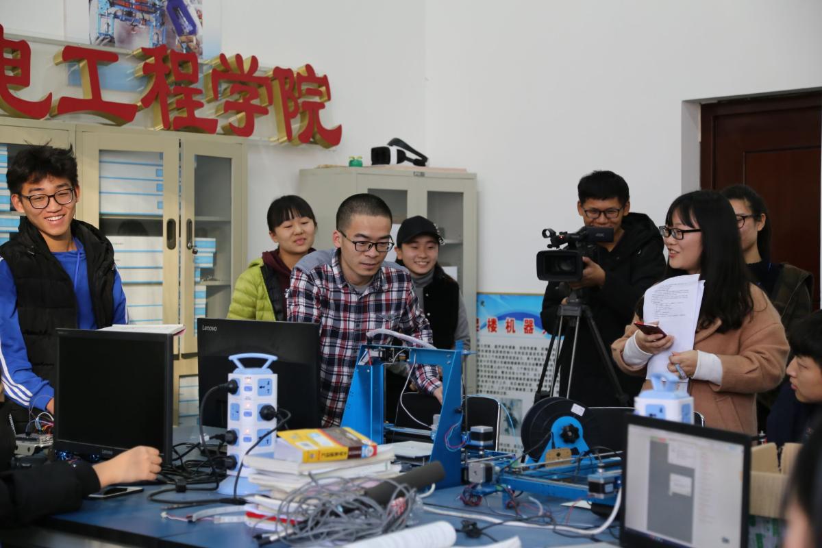电气(机电)工程学院科技创新中心师生向校媒记者介绍研发项目