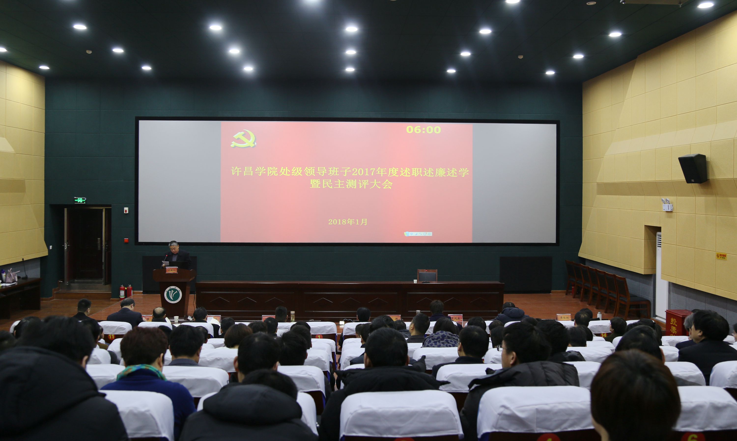 1月17日,金沙官网处级领导班子2017年度述职述廉述学暨民主测评大会在创新创业学院双创信息中心召开。校领导、全校处级干部、二级单位院长(主任)助理参加会议。会议由党委组织部部长陈遂德主持。