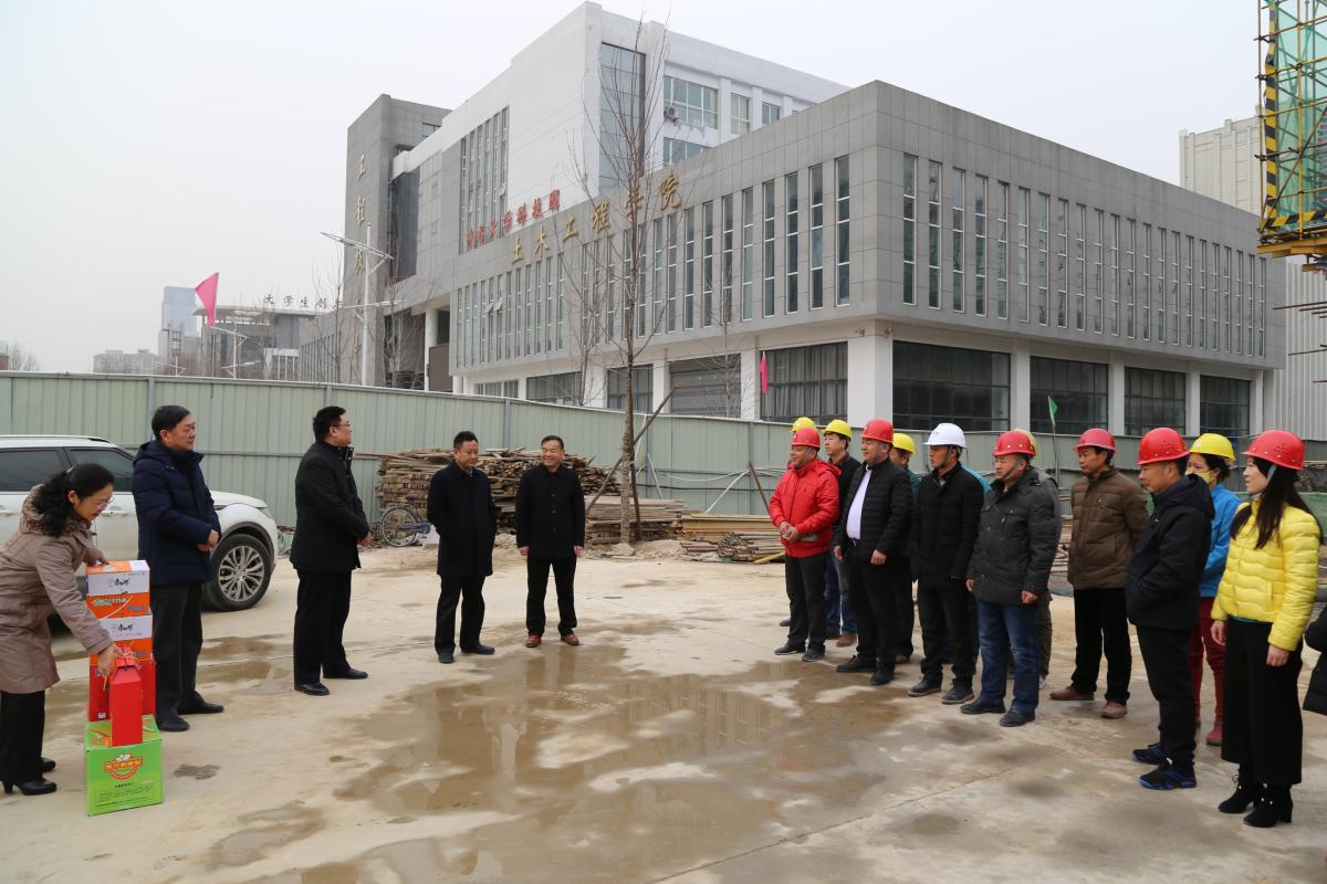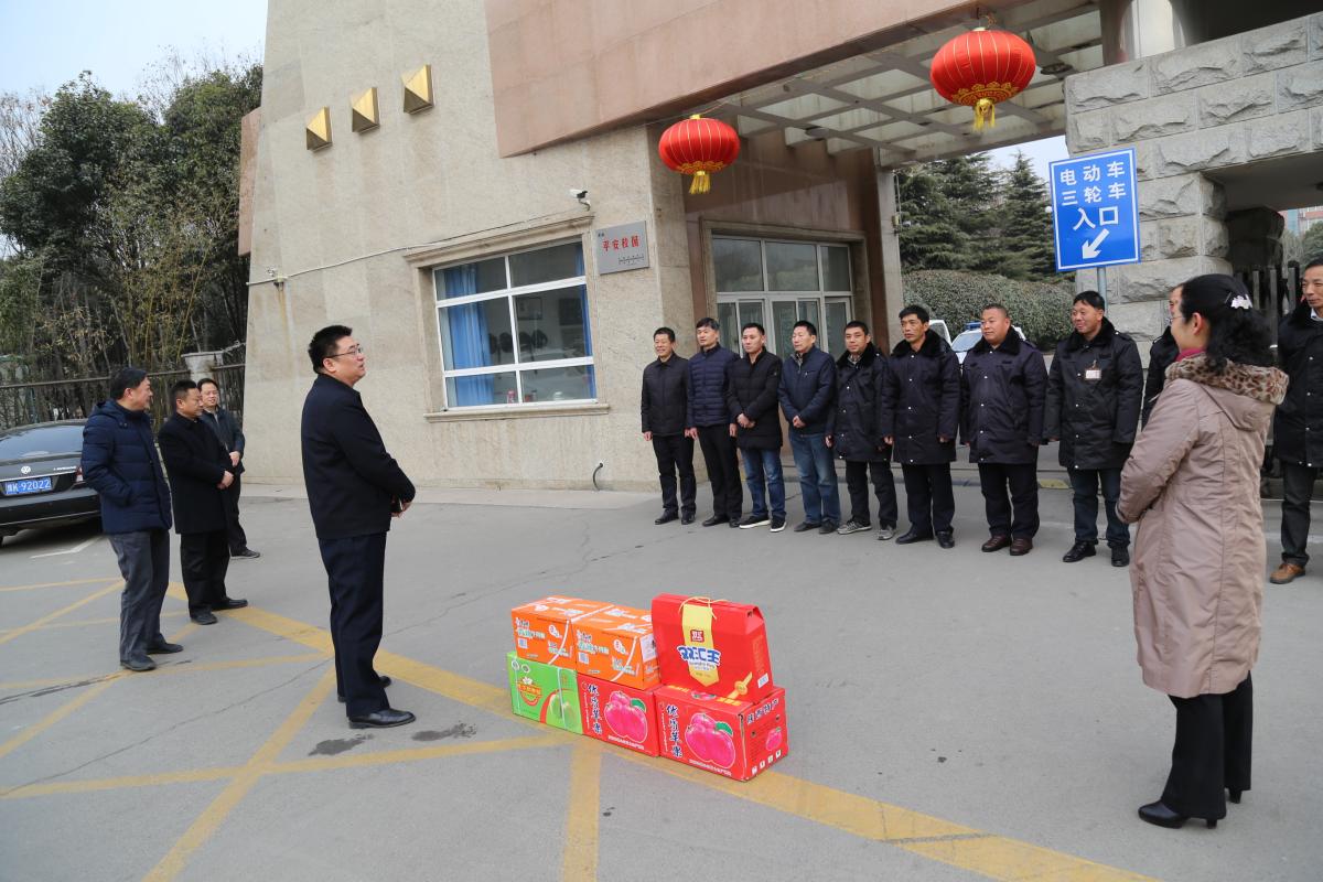 闫纪建书记一行先后前往学校门岗、学生宿舍区、科技楼施工现场等,向留校学生和工作人员送上节日慰问品和新春的祝福。闫纪建、孙海、赵正风代表学校党委、行政向寒假期间在校的同学们、执勤人员、施工人员致以节日的祝福和问候,叮嘱他们在春节期间一定要注意安全,并嘱托同学们要多与家人联系,同时希望各位值班和工作人员能坚守岗位,爱岗敬业,确保寒假和春节期间校园的安全稳定。