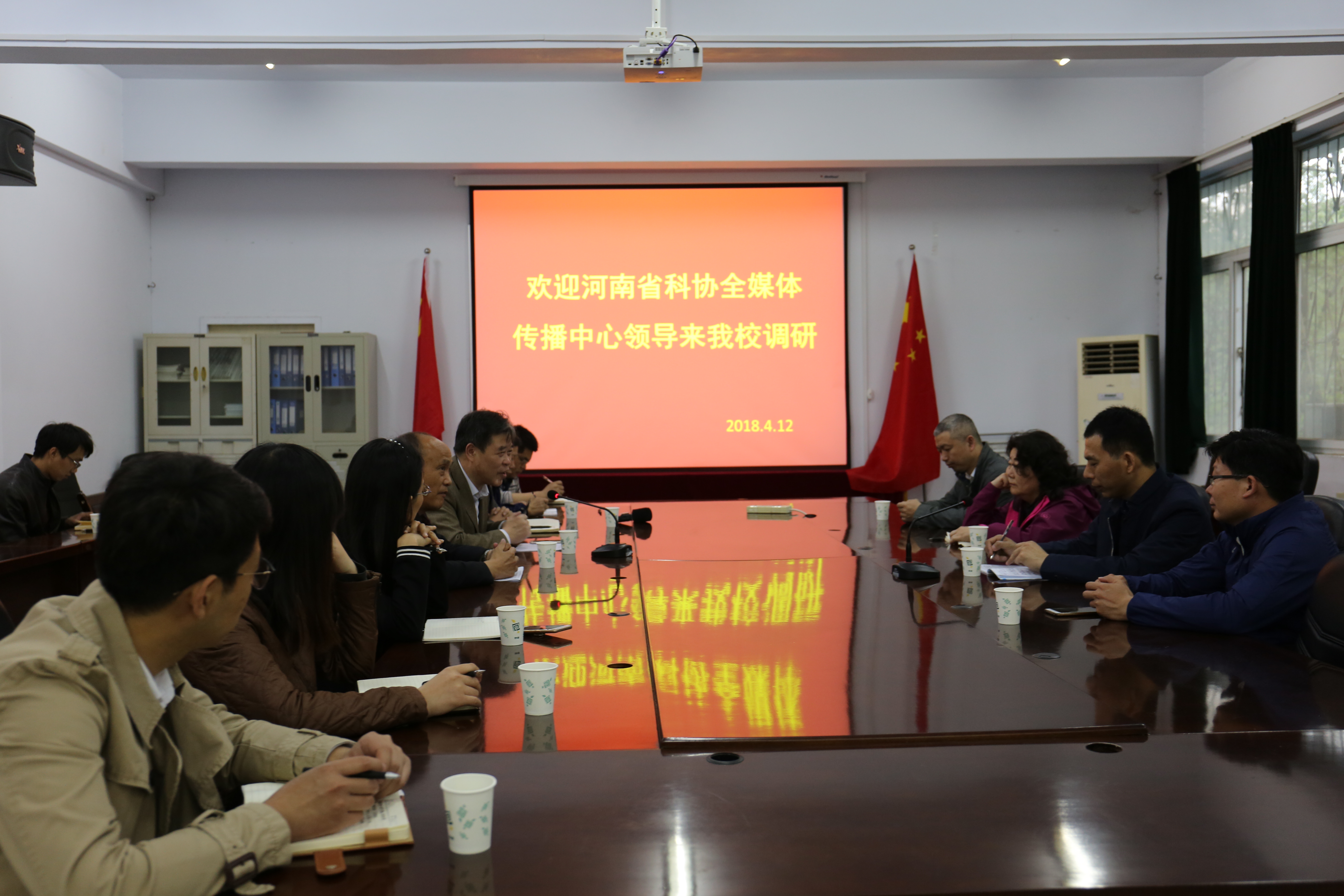 4月12日上午,河南省科协全媒体传播中心刘记强主任一行3人,在许昌市科协科普部部长周海旺的陪同下到金沙官网进行调研交流,并就金沙官网全媒体科普传播中心创作基地建设、科普节目创作等情况开展调研座谈。金沙官网科技处、公共实验中心等相关单位负责人、教师代表参加了座谈交流。座谈会由公共实验中心主任李志业主持。