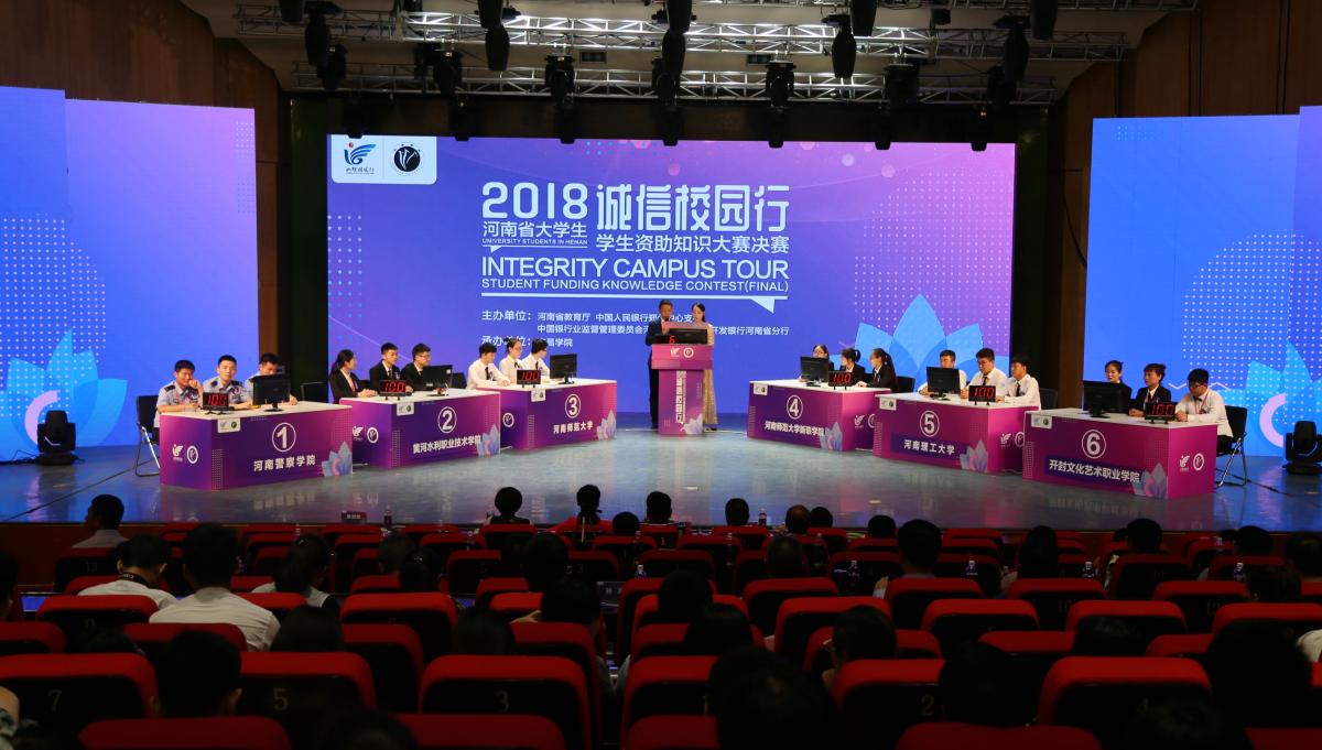 5月15日,由河南省教育厅、中国人民银行郑州中心支行、中国银监会河南省监管局、国家开发银行河南省分行主办,金沙2004路线js5承办的河南省大学生“诚信校园行”学生资助知识大赛决赛在金沙官网音乐厅开幕。河南省学生资助管理中心主任宋振、副主任田新,金沙官网党委副书记孙海,以及36所省内高校学生资助工作负责人出席开幕式。
