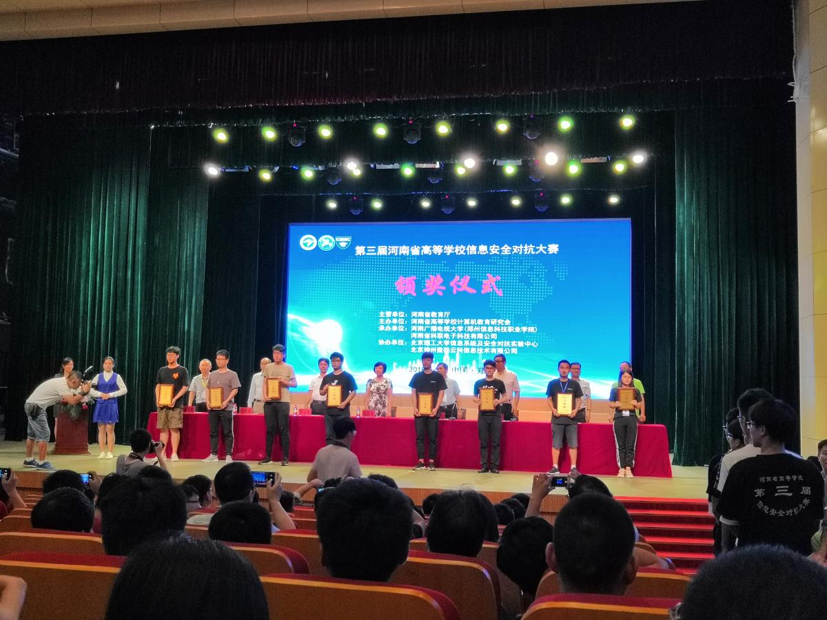 本次大赛由河南省教育厅、河南省高等学校计算机教育研究会主办,分线上、线下两个阶段。其中,一等奖获奖团队将于7月中旬代表金沙官网赴北京参加第15届全国大学生信息安全与对抗技术竞赛。大赛期间还举行了教师友谊赛,金沙官网信息工程学院教师张永、忽海娜和信息化管理中心教师孙培岩组队参加,在省内16所参赛高校中取得第3名的好成绩。