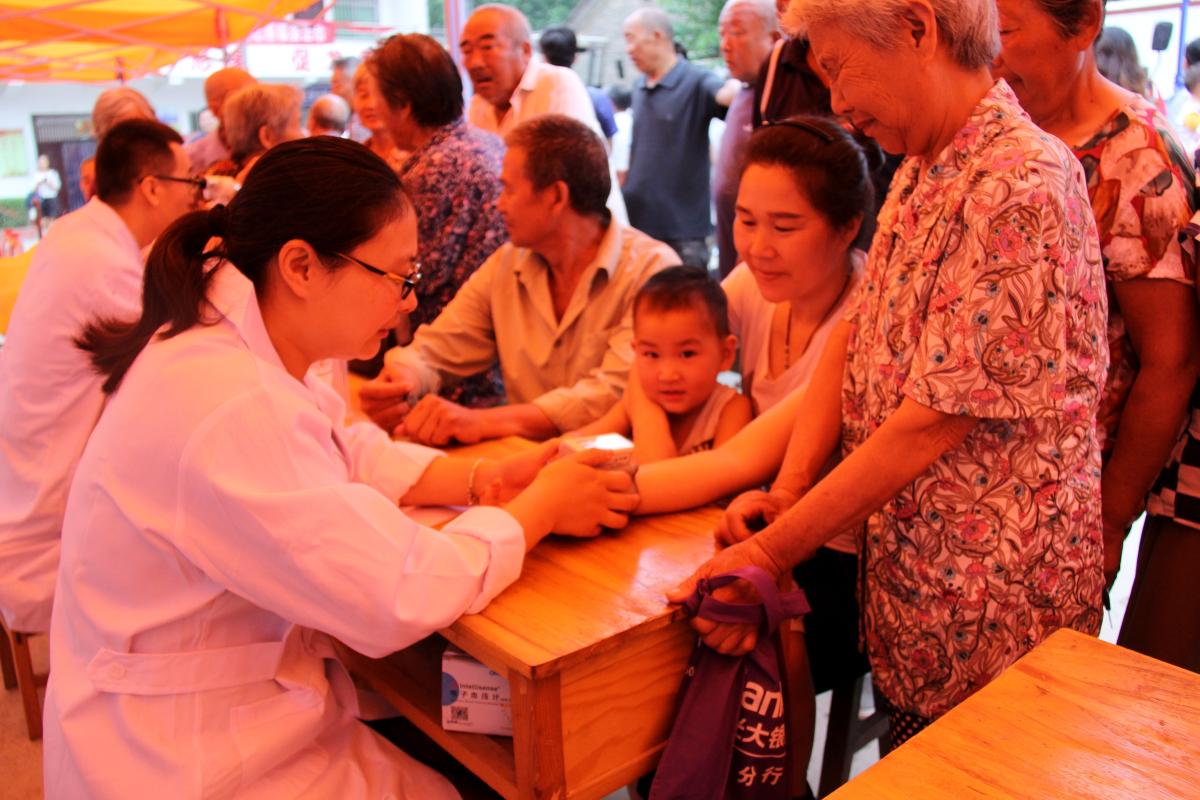 在村委会大院,来自金沙官网医学院和校医院的教职工志愿者设置了内科、眼科、儿科、口腔科、妇科、护理、中医、保健与健康指导八个咨询台,现场免费为村民测量血压、血糖、提供心电图检查、发放了常用药品,耐心解答村民的咨询,细心诊断各类常见、多发疾病,指导群众规范用药,同时给予科学的治疗和保健建议,使每一位前来就诊咨询的村民享受到“家门口”的优质医疗服务。