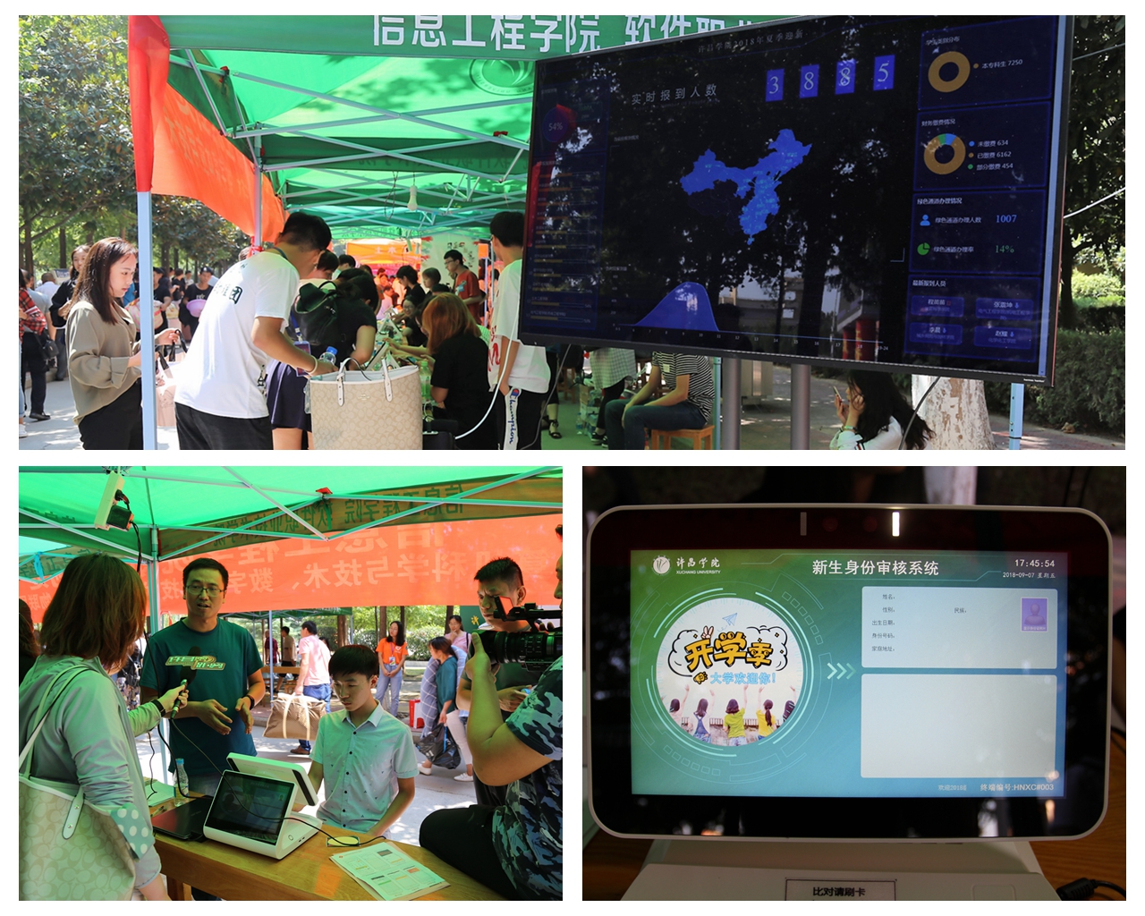 作为学校的信息化和智能系统的一次尝试,信息工程学院在迎新期间使用了人脸识别的智能报到系统,通过人脸识别和个人数据的有效匹配,大大节省新生报道时间,避免人工核查资料的繁杂和误差。目前这套系统还处于试用阶段,可以预见的是,科技感十足的人工智能将越来越多应用在校园生活中。而很多2018级新生已经通过APP,使用微信等缴纳学费,在今日校园APP上同学们还自助完成了挑选宿舍、床位,进行消费支付等。