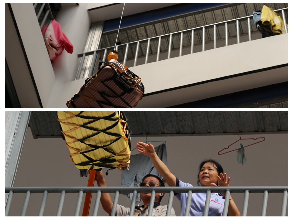 食品质量与安全专业的位喜燕同学住在静二,她和我们分享了她初入校园的心情:“我们住在六楼,楼妈和工作人员用塔吊帮我们把行李吊到六楼,感觉她们很辛苦。财务管理专业的昊怡鸽告诉我们:“我刚开始还担心报到很麻烦,但是到了学校后发现很简单顺利,我们每一个新生都有至少一个学姐学长领着,什么事情办起来都很方便。手续办完后,学长学姐还带我们熟悉校园环境。”