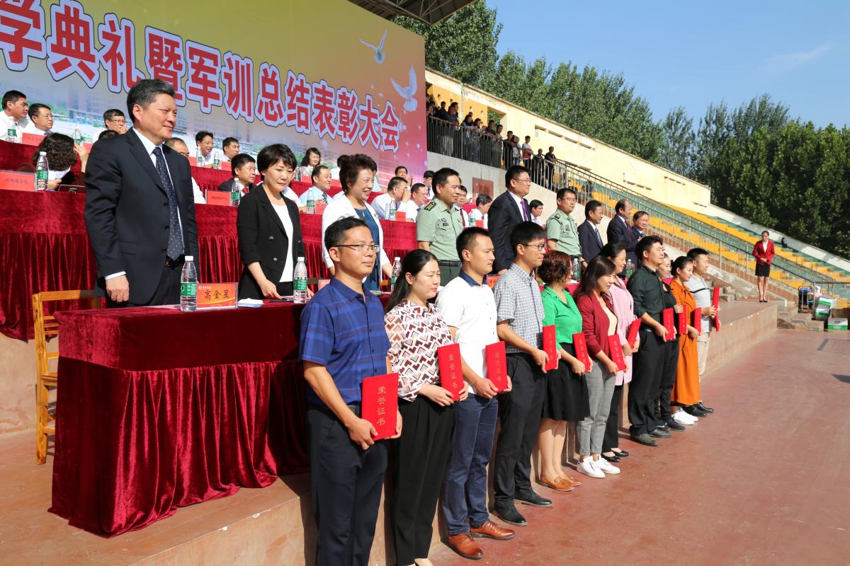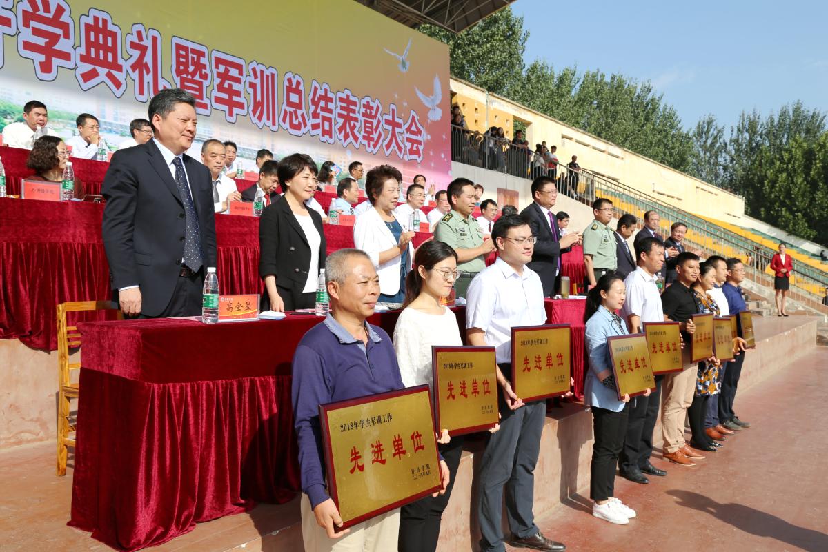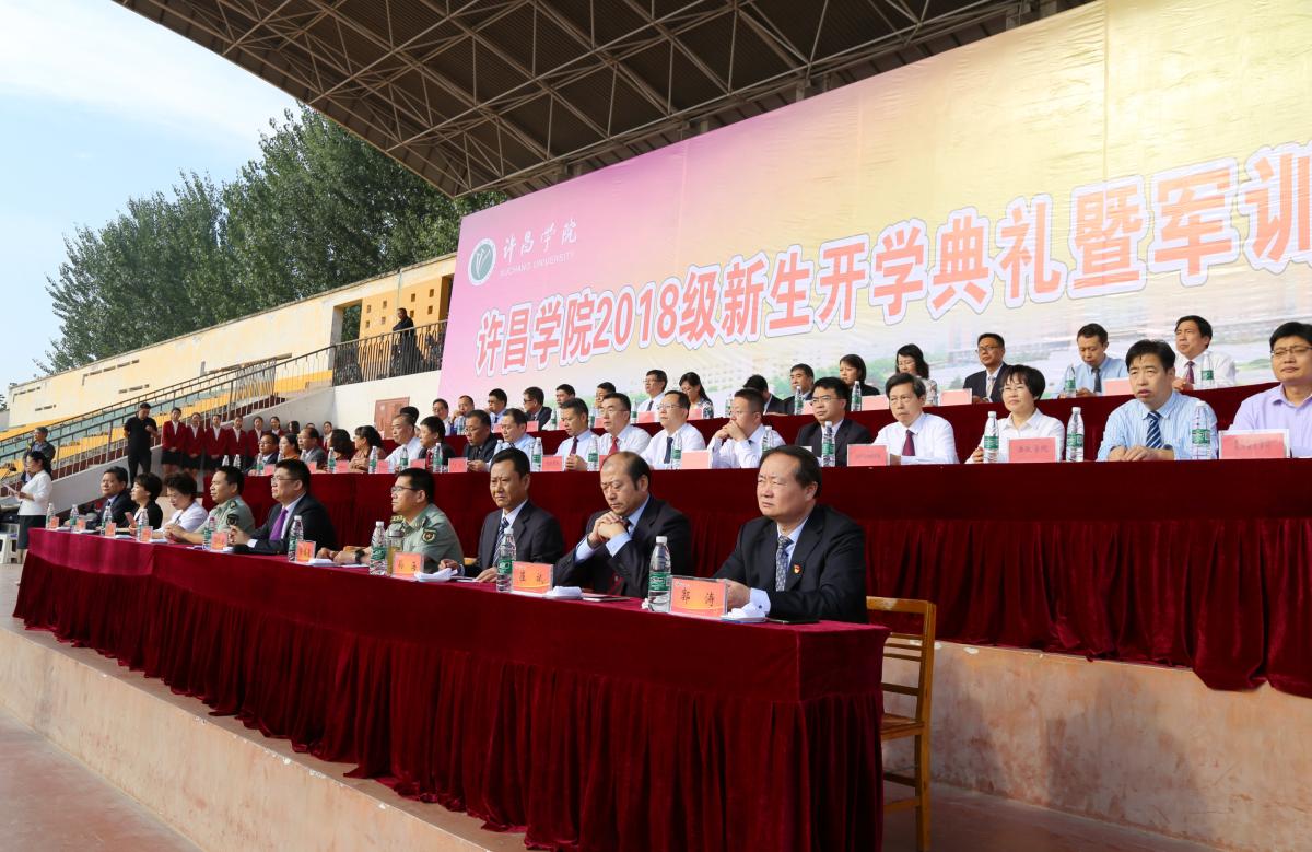 9月21日上午,金沙官网在学校羽飞田径场举行2018级新生开学典礼暨军训总结表彰大会。校党委书记闫纪建、校党委副书记孙海、纪委书记罗凤英、副院长崔斌、黄怡俐、郭涛,工会主席高金星出席大会。许昌军分区战备建设处处长陈福星、魏都区武装部政委牛听甫也出席活动并在主席台就坐。学校机关各部门和二级学院负责人、各团总支负责人、辅导员(班主任)和全体2018级新生共同参加会操活动和开学典礼。仪式由党政办公室主任潘春彩主持。