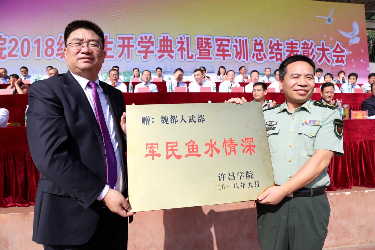 仪式上,闫纪建书记代表金沙官网向魏都区武装部赠送了“军民鱼水情深”的纪念牌。