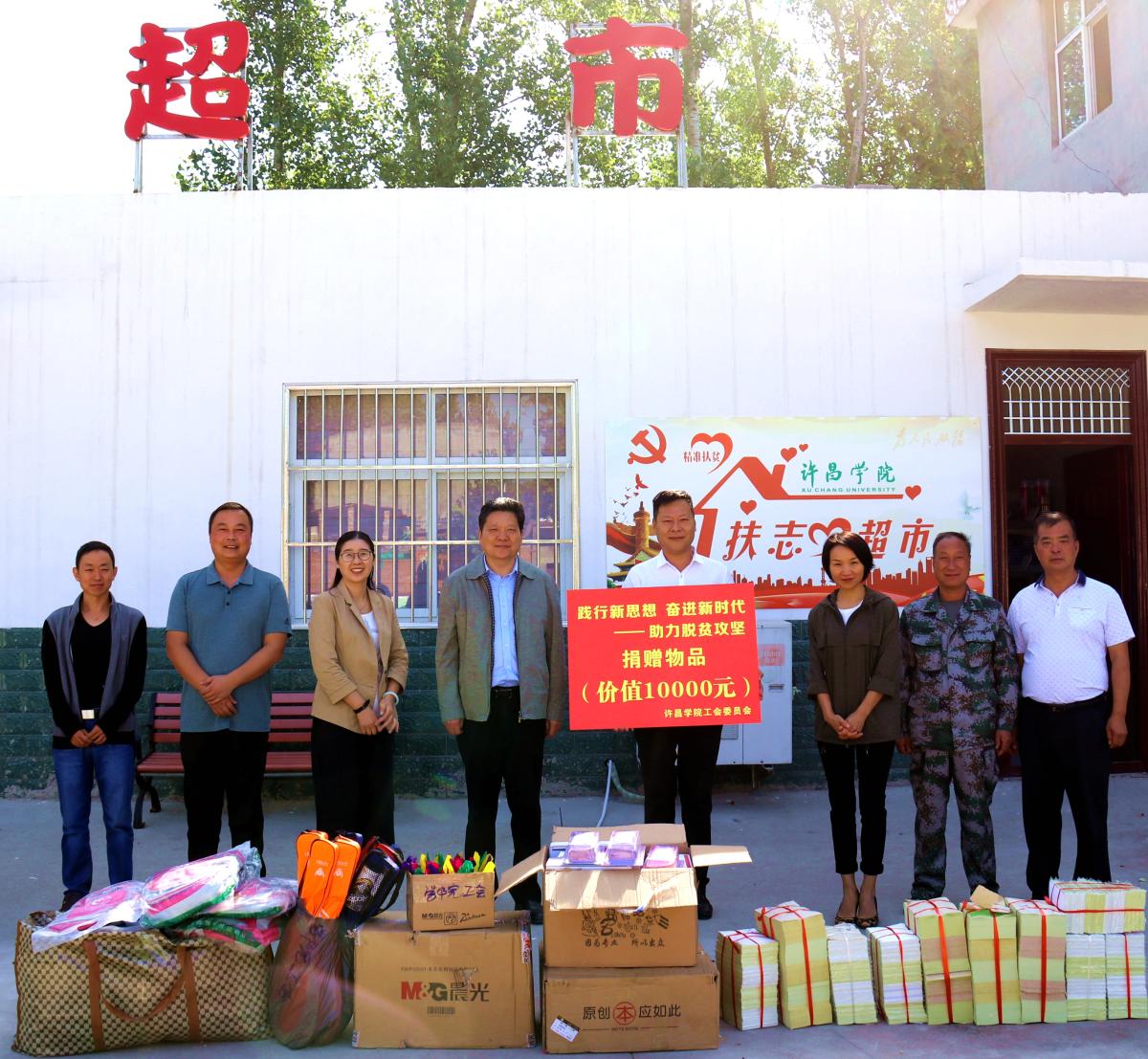 9月30日,校工会主席高金星带领“践行新思想·奋进新时代”——助力袁庄村脱贫攻坚教职工志愿服务队到金沙官网结对帮扶的建安区艾庄乡袁庄村开展精准扶贫“爱心超市”捐助活动。校工会、袁庄村“两委”干部和袁庄村部分村民代表参加捐助活动,捐助活动由金沙官网省派驻袁庄村第一书记陈浩勇主持。