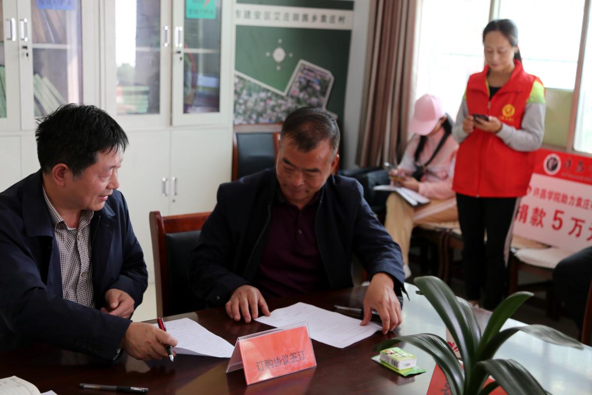 仪式上,院长赵继红代表学校向袁庄村捐赠五万元助力脱贫攻坚资金。学校后勤管理服务中心主任龚培生与袁庄村村主任袁俊岭签订了农作物订单销售合作协议书。省派第一书记陈浩勇作了驻村以来的工作汇报。