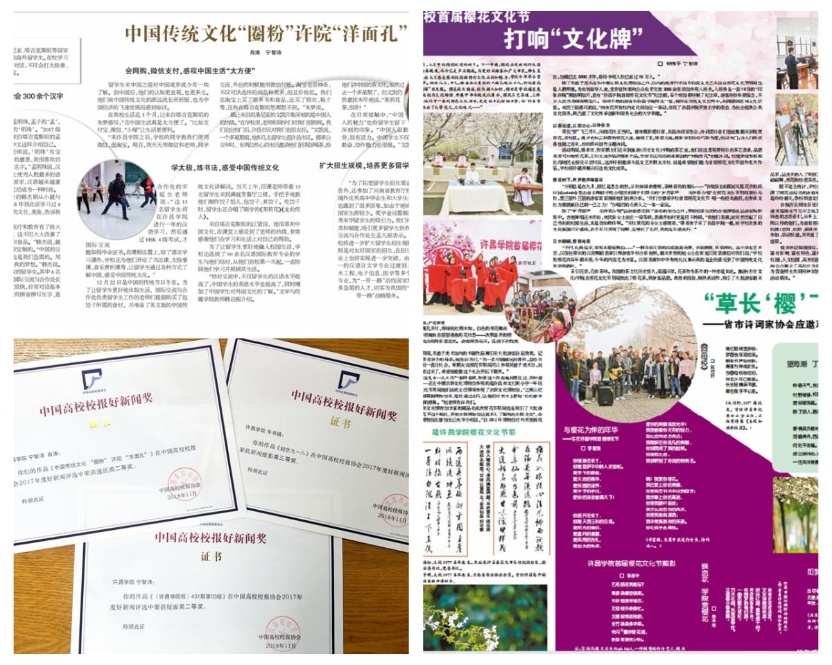 会上公布并评点了2017年度全国高校新闻获奖情况。金沙官网党委宣传部(新闻中心、校报编辑部)报送的作品《中国传统文化“圈粉”许院“洋面孔”》《金沙2004路线js5报·樱花文化节专版》《纪念九·一八》分别荣获通讯类二等奖、版面类二等奖和新闻摄影三等奖。
