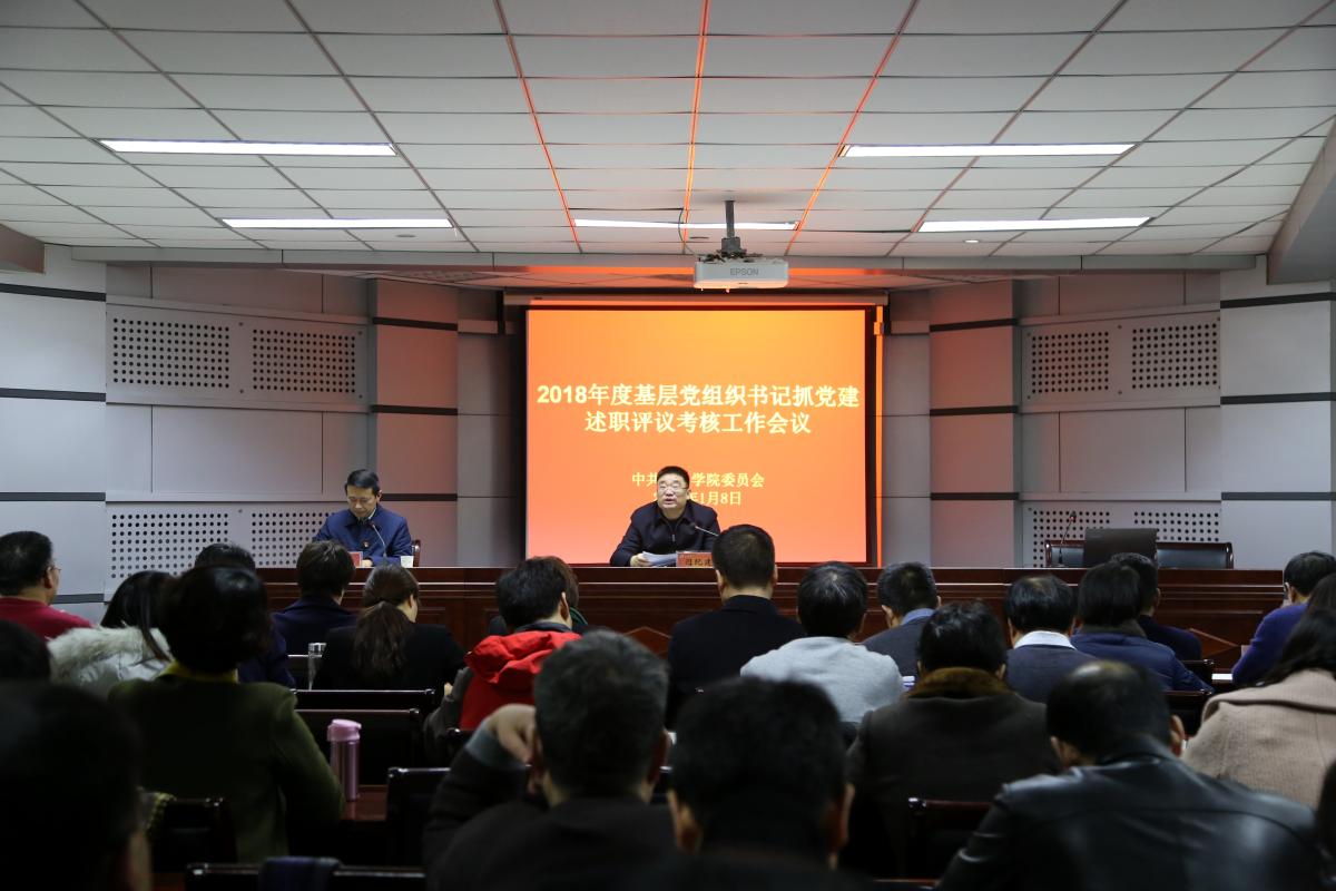 1月8日下午,金沙官网在第三会议室召开2018年度基层党组织书记抓党建述职评议考核会议。校领导闫纪建、赵继红、孙海、罗凤英、赵正风、高金星出席会议。党群机关职能部门主要负责同志,各基层党委(党总支、直属党支部)书记、副书记,基层党支部书记代表,以及“两代表一委员”和群众代表参加会议。会议由党委组织部长陈遂德主持。