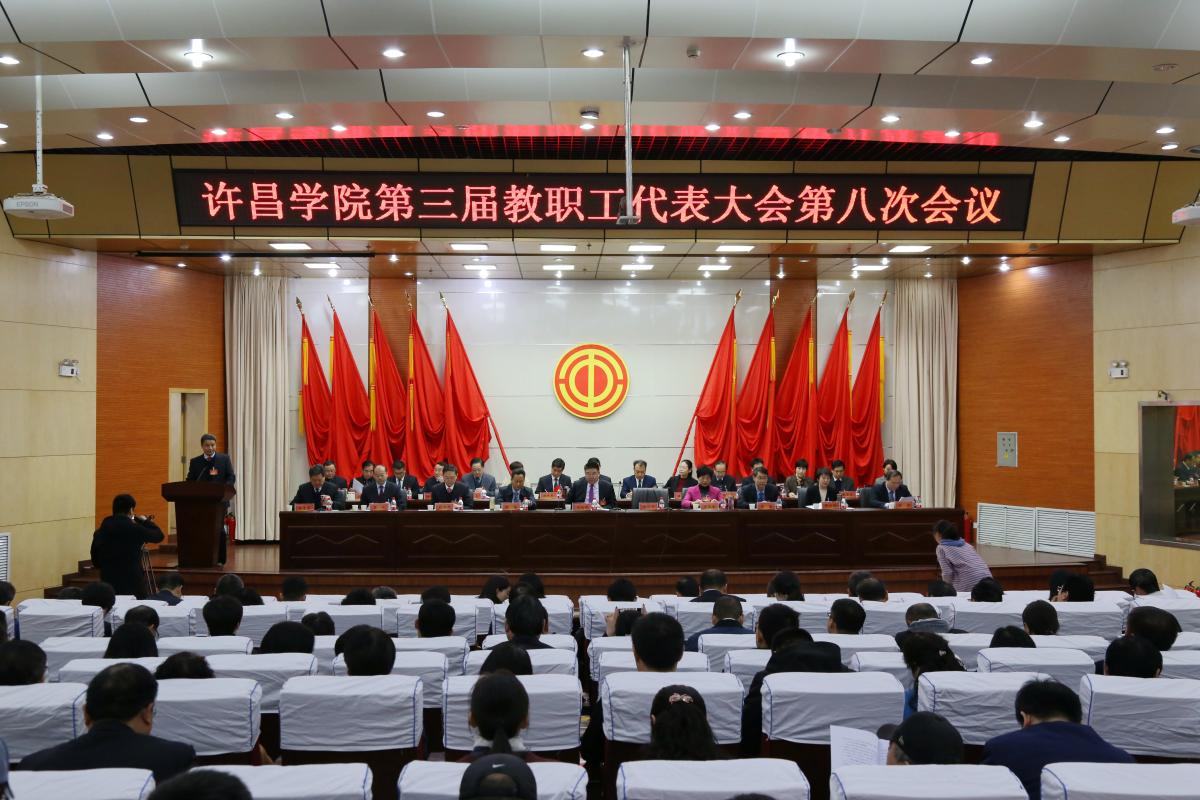 3月29日,金沙官网在学术报告厅召开第三届教职工代表大会第八次会议。大会听取、审议并通过了学校行政工作报告、财务工作报告和人事管理及薪酬制度改革方案及其实施细则。全体校级领导、172名教职工代表出席了本次会议。工会主席高金星主持会议。