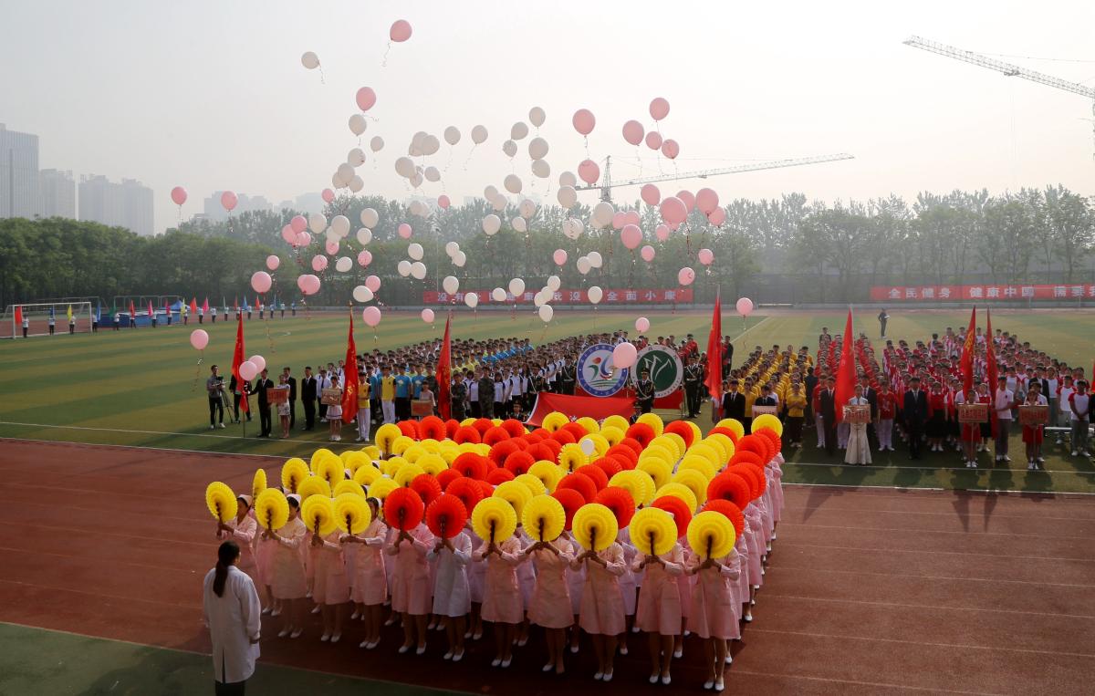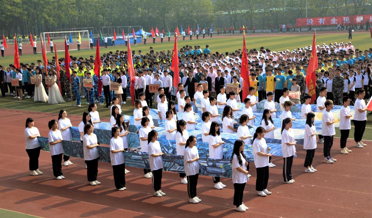 开幕式上,教职工代表队进行了大众广播操(工间操)比赛,二级学院学生代表队进行了武术健身操“英雄少年”的比赛。