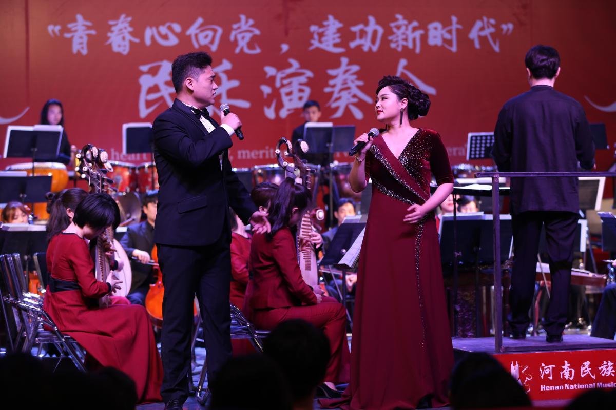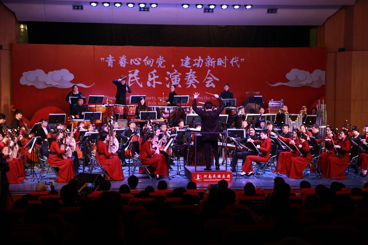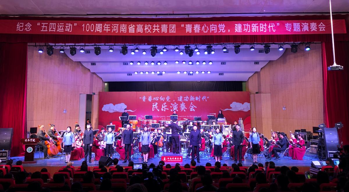 4月28日晚7点,由共青团河南省委主办,河南民族乐团和10所高校共同承办的河南省高校共青团“青春心向党·建功新时代”专题民乐演奏会首场演出在金沙官网音乐厅圆满举行。团省委副书记王笃波、金沙官网工会主席高金星、团省委学校部部长陈勇、副部长许彤以及党委宣传部、团委、音乐舞蹈学院主要负责人出席活动,300余名师生代表共同欣赏了现场演奏会。