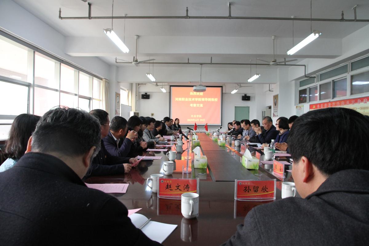 4月29日上午,河南职业技术学院在党委组织部部长霍本瑶带领下,一行17人到金沙官网考察交流基层党建工作。