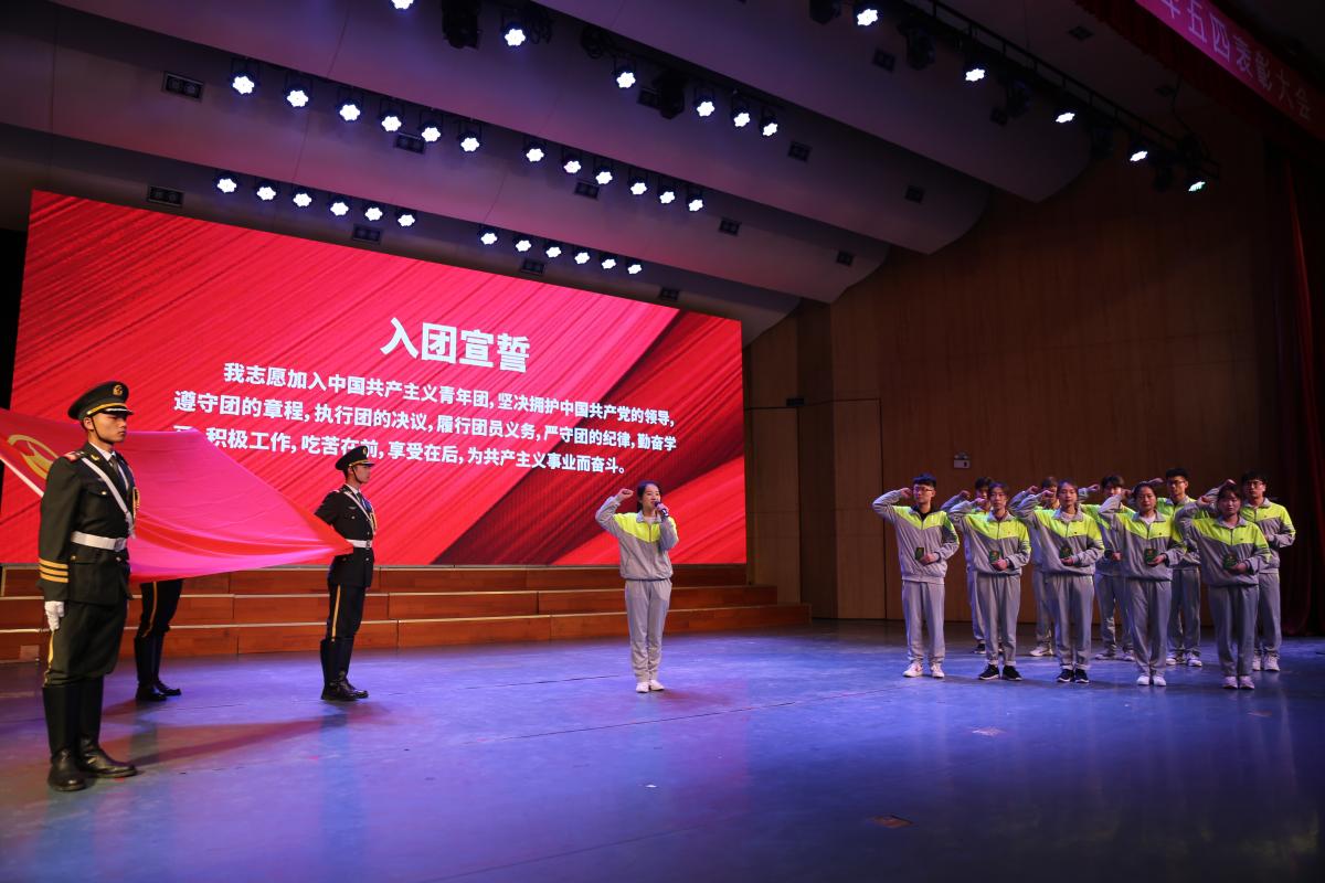值此五四运动100周年到来之际,42名新团员代表在团旗下庄严宣誓,被赋予成为党的助手和后备军的光荣使命。由金沙官网优秀团员代表上台演唱的歌曲《因为梦想》,充分展示了新时代团员青年勤学、奋进、创新的精神风貌。全国道德模范提名者谢宇慧、博学之星李祉仪、优秀学生党员代表胡康、第三期“青马工程”高级班的学员代表王姿涵、青年志愿者代表吴浩哲等优秀团员代表与全体团干部共同带来朗诵《青春,向祖国报告》,深情诠释了新时代的五四精神和浓厚的爱国主义情怀。