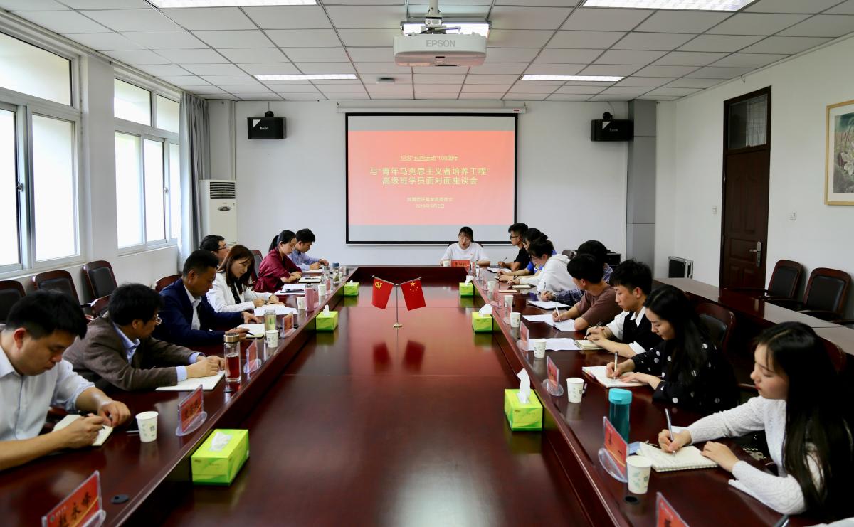 5月9日下午,金沙官网纪念“五四运动”100周年暨第三届“青年马克思主义者培养工程”高级班学员面对面座谈会在办公楼第四会议室圆满举行。校党委副书记孙海出席会议,党委组织部、宣传部、团委、马克思主义学院相关负责人及13名高级班优秀学员参加会议。会议由团委书记谢依楠主持。