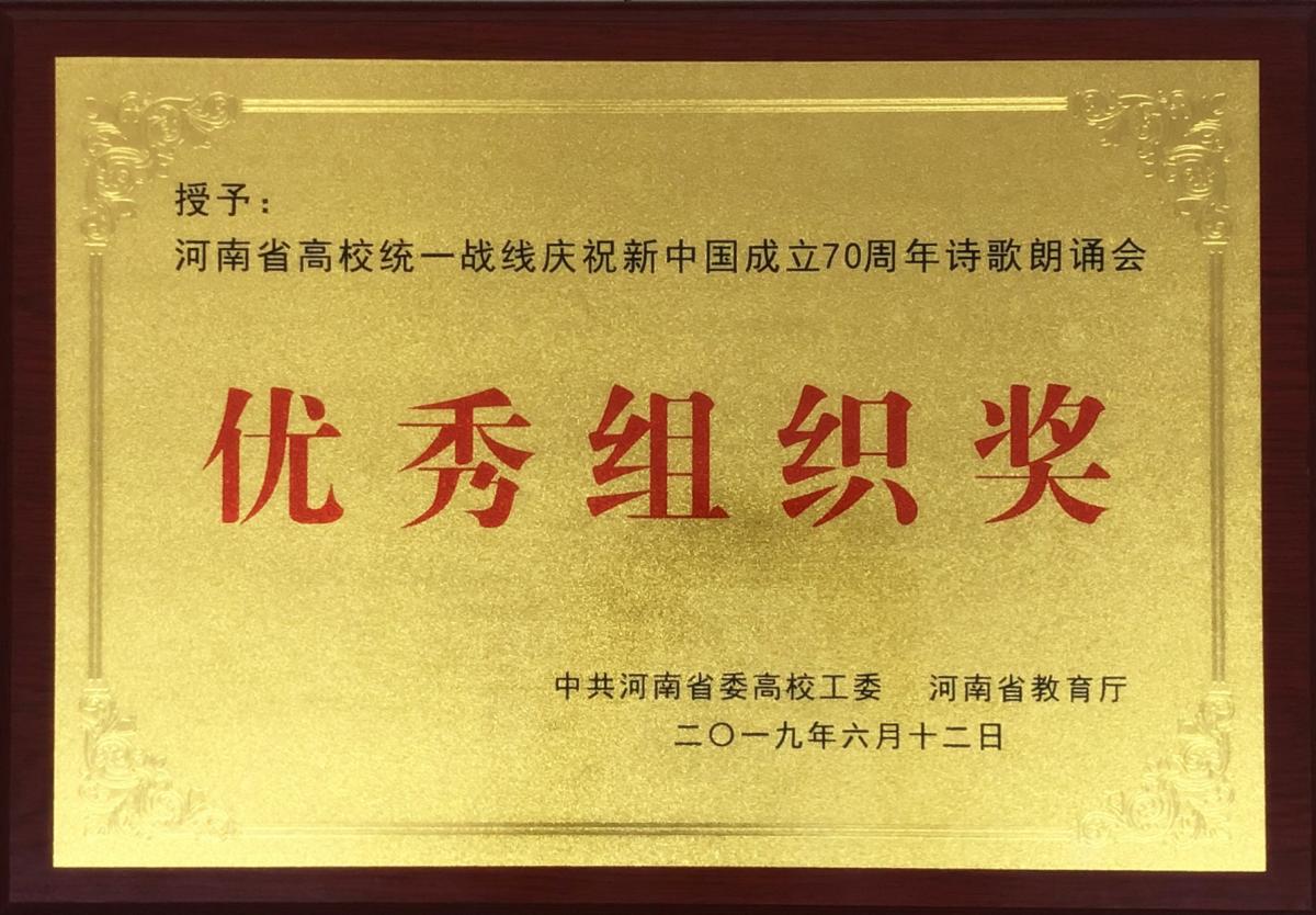 6月11日至12日,河南省高校统一战线庆祝新中国成立70周年诗歌朗诵会决赛在郑州航空工业管理学院举行。金沙官网获三等奖和优秀组织奖。