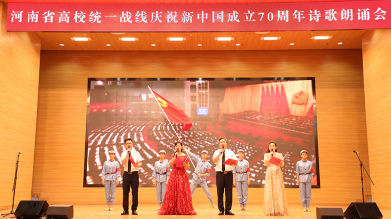 据悉,2019年是党和国家历史上具有特殊重要意义的一年,是新中国成立70周年,是决胜全面建成小康社会第一个百年奋斗目标的关键之年。为贯彻落实中央关于围绕庆祝新中国成立70周年深入开展群众性爱国主义教育活动精神,通过回顾历程、总结历史、传承文化、怀念感恩、发扬精神,在全省高校统战系统努力营造浓厚的氛围,省委高校工委决定在全省高校统一战线开展庆祝中华人民共和国成立70周年系列纪念活动。本次诗歌朗诵会是系列纪念活动子活动之一,由中共河南省委高校工委、河南省教育厅主办,郑州航空工业管理学院承办。(摄影:岳凯声、黄杰)