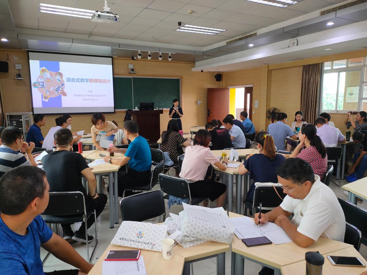 一周的研修学习过程中,来自中山大学、华南师范大学的焦剑利、王金发、陈启买、国智丹、王竹立、童叶翔、杜炫杰、尹睿、刘喆等专家教授,先后做了《现代教育技术在高校教学中的应用》《高校教师专业成长路径与体系建构》《现代教育教学与智慧空间的深度融合》《教学学术思维:教学学术引领下的课堂教学改革研究》《反思建构:学习的内化与实践》《教学导演思维:影响学生学习行为的有效策略》《以学生为中心的教与学—金课建设》《在线开放课程的建设与应用》《混合式教学的课程设计》等专题报告或工作坊。