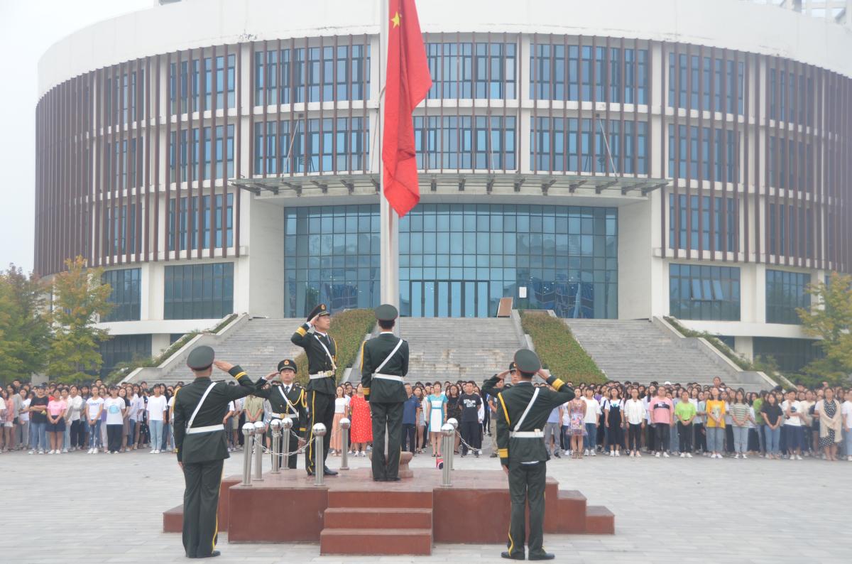 9月2日清晨,金沙官网在弘毅广场举行新学期第一次升国旗仪式暨“国旗下讲话”活动。副院长郭涛及学校相关职能部门负责人,各二级学院党总支书记、副书记,全体专兼职辅导员及学生代表共2600余人参加了本次活动。兴华路校区也同时举行了升国旗仪式。