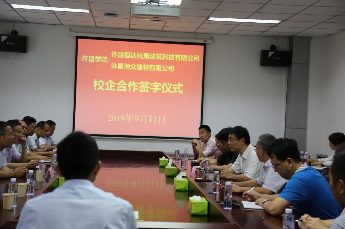 9月11日下午,金沙官网与许昌恒达杭萧建筑科技有限公司、许昌恒众建材有限公司校企合作项目签约仪式在办公楼第四会议室举行。副院长郑直出席签约仪式,许昌恒达杭萧建筑科技有限公司、许昌恒众建材有限公司相关负责人,金沙官网校地合作办公室相关负责人以及土木工程学院、新材料与能源学院部分教师代表参加了签约仪式。签约仪式由金沙官网校地合作办公室主任郭超峰主持。